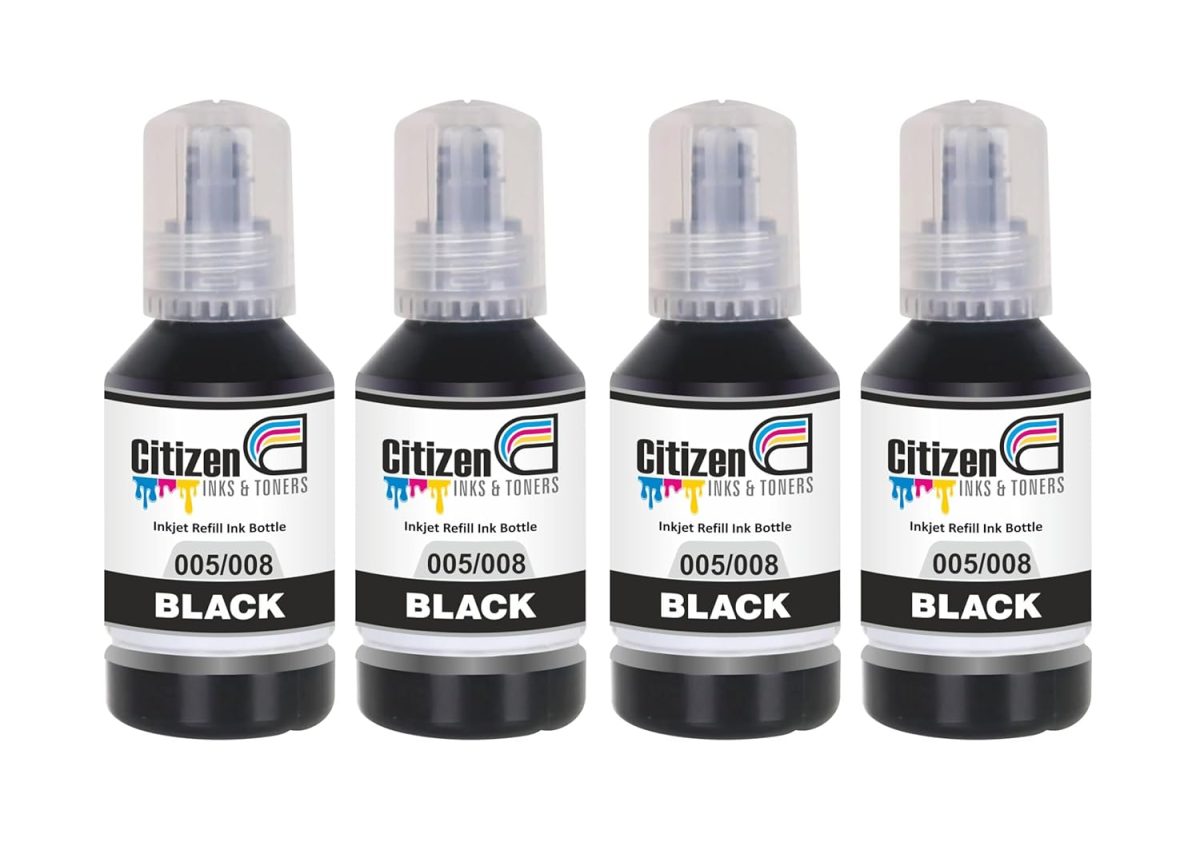 005/008 Refill Ink Bottle | Compatible with Epson Printers – M1100, M1120, M1140, M1170,M2170,M3170,M3180 | High Print Quality | Leak-Proof (Pack of 4 : Black XL)