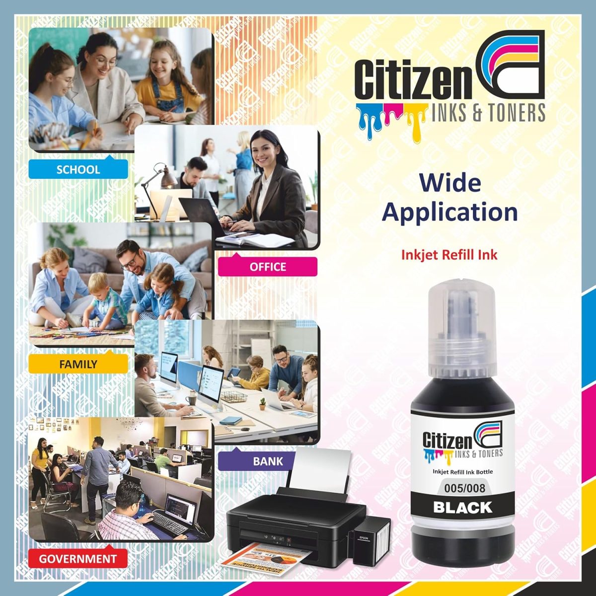 Citizen Inks & Toners offers premium refill ink designed to give your inkjet printer fresh ink without the cost of buying new cartridges. With our high-quality, easy-to-use refill ink, you can print vivid and professional-quality documents and photos while saving money and reducing waste. Our ink is formulated to match OEM standards, ensuring consistent, reliable performance for every print.