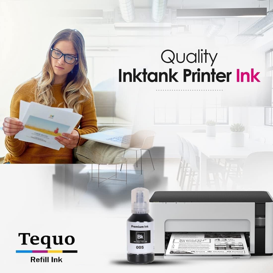 Compatible Ink for Epson 005 compatible inks specially made for Epson Eco Tank Ink Tank printers. inks are developed with the highest purity raw material to make them the best compatible ink solution for Compatible For Epson EcoTank printers. Our inks are formulated specially to offer Vivid and bright colours with Excellent colour matching print performance. All our inks are tested rigorously on different parameters for reliable print performance each time you print. inks help you reduce your printing cost while maintaining print quality, There are no hassles of installation with ink since they are plugged and play. The ink is a perfect fit for all applications such as printing home documents, business documents, and photos for home and work use.