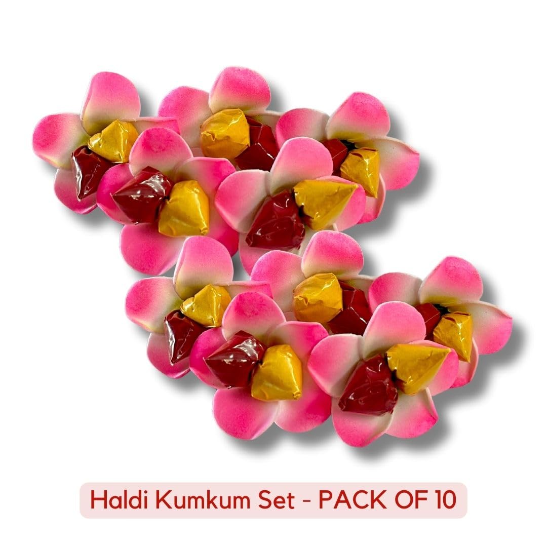 Description: 1 set contains 1 Haldi packet + 1 Kumkum packet in 1 Pink Flower