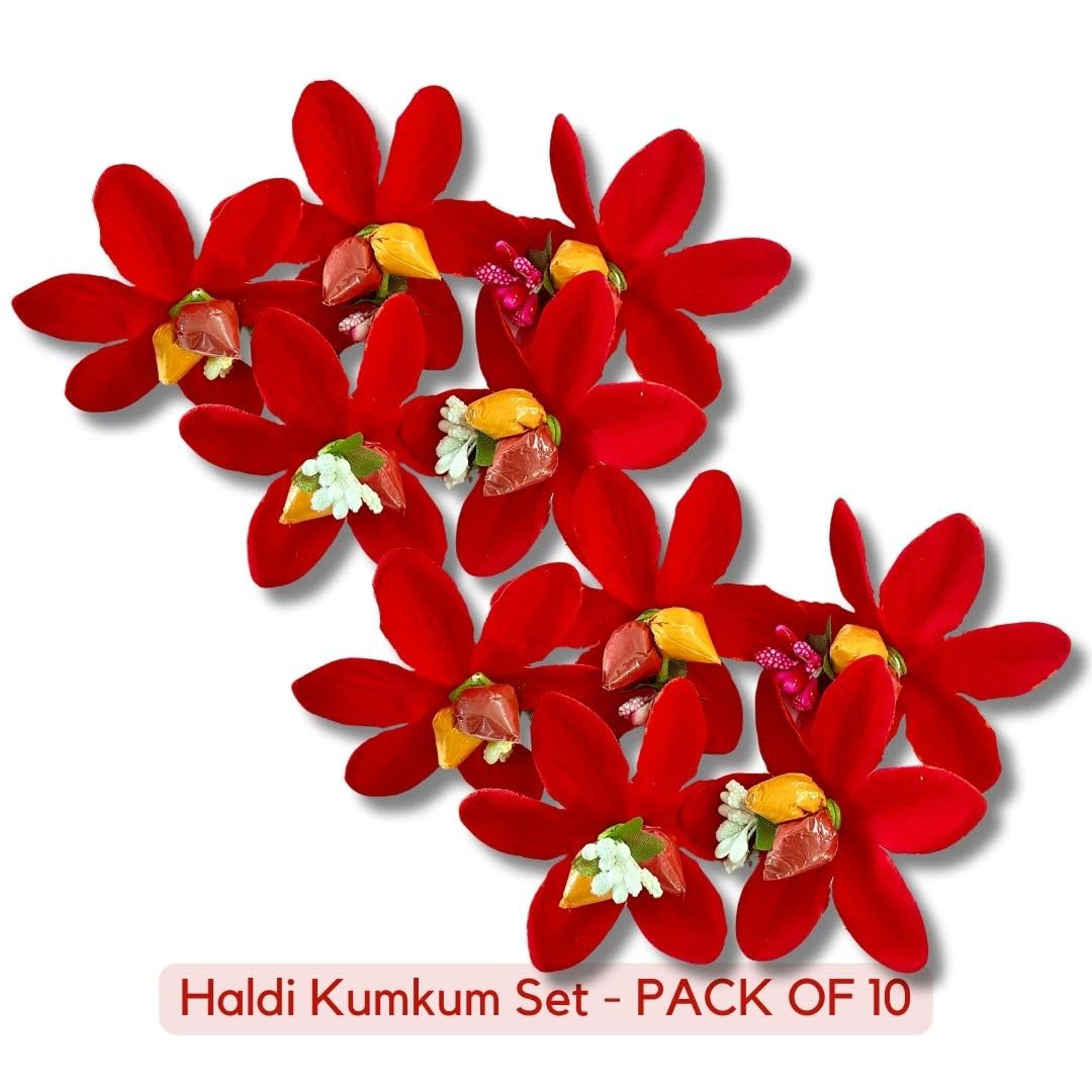 Description: 1 set contains 1 Haldi packet + 1 Kumkum packet in 1 Red Flower