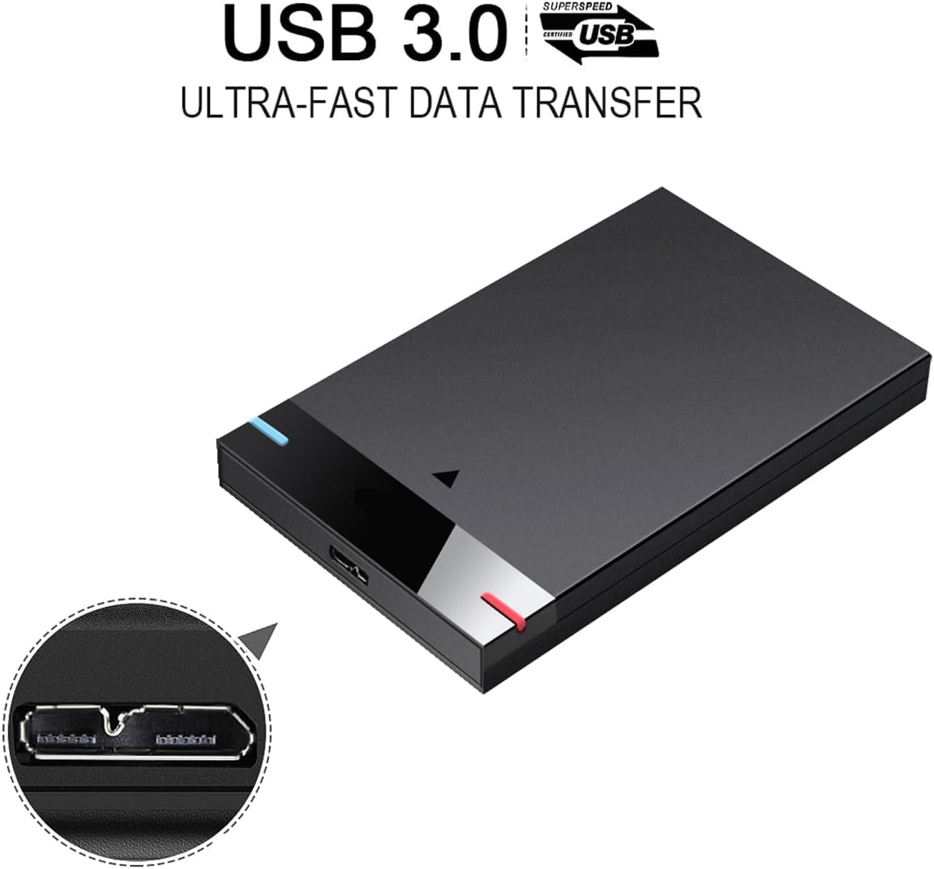 Portable External Hard Drive 1. Portable hard drives with USB 3.0 and SATA port offer reliable, fast data transfer rates and universal connectivity with USB 2.0 and USB 3.0 devices. 2. Simple & Ultra slim – Sleek, all aluminum enclosure for durability, Seamless connection. The small, light weight enclosure features massive capacity and high quality and reliability. 3. Plug and Play – This external drive is ready to use without external power supply or software installation needed. 4. Ultra-fast Data Transfers – Works with USB3.0 and SATA cable to deliver, allows up to 5Gbps transfer speed. 5. Auto sleep when not operated for 10min function to prevent body heat and cut consumption. 6. System Compatibility – It is compatible with Windows 7/8/8.1/10, Mac, Linux, Android OS and more. It’s suitable for PC, Desktop, Laptop, MacBook, Chromebook, Xbox One, Xbox One S series consoles. 7. By default, This HWAYO portable hard drive is formatted already. You can Reformat it if you want to use it on your specific requirements. System: Windows7/8/8.1/10, Format Support: FAT/FAT32/NTFS/EXFAT System: Mac,Format Support: APFS/EXFAT System: Linux , Format: EXT2/EXT3/EXT4 System: Android ,Format: FAT32/NTFS System: Xbox360 ,Format: FAT32 System: Xbox one, Format: EXFAT/FAT32 System: PS4, Format: EXFAT/FAT32 Package included: 1 x Portable External Hard Drive 1 x USB3.0 Cable Note: As the type of file system used for the drive, partitioning arrangement and type of operating system could affect the actual storage capacity displayed by your computer. The actual usable storage capacity may be less, 500GB≈465GB,1TB≈931GB.