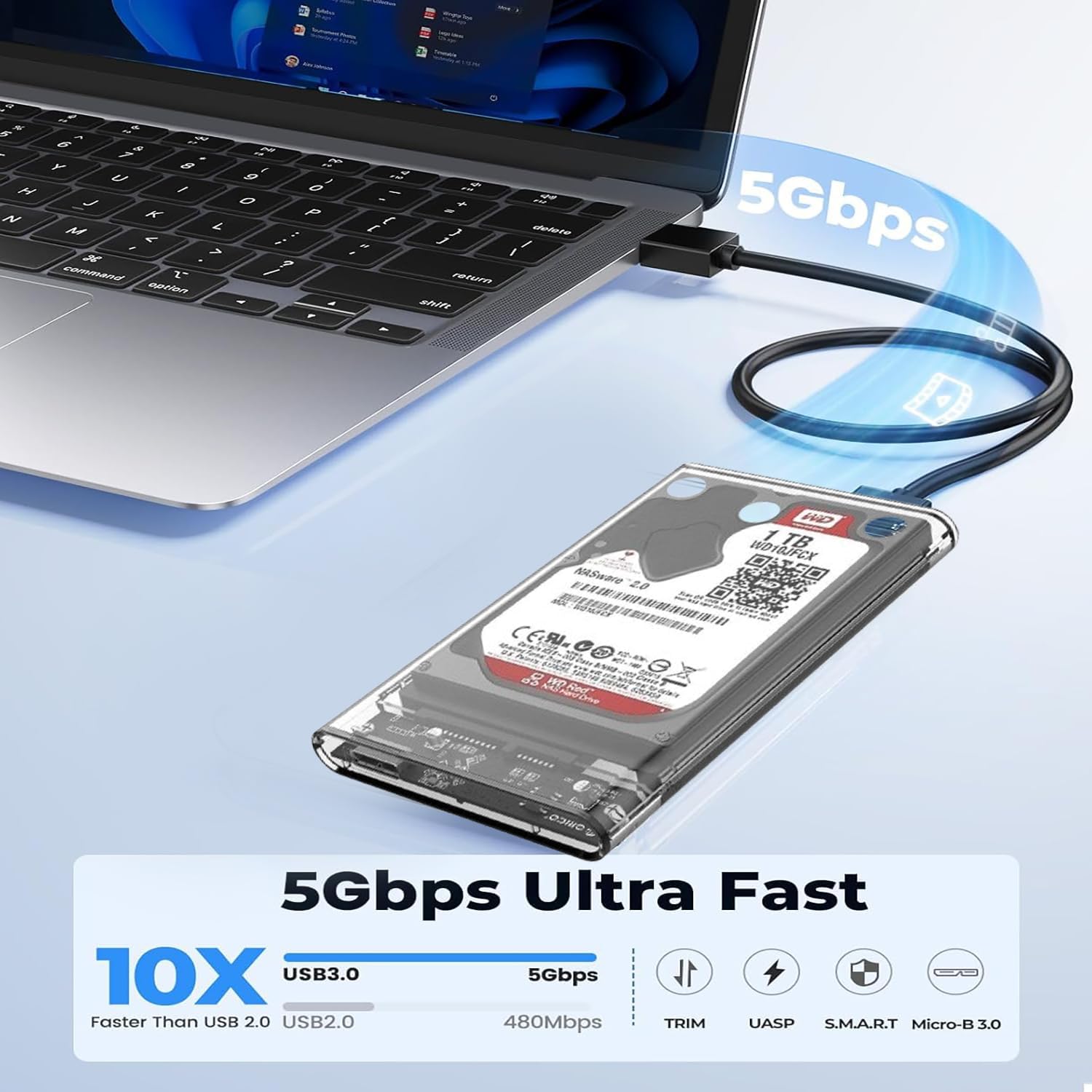 Show off your storage in style with the Transparent 2.5-Inch USB 3.0 SSD/HDD Enclosure. Designed for performance and aesthetics, this external SATA hard drive case allows you to convert any 2.5″ SATA SSD or HDD into a portable external drive—perfect for backups, file transfers, or mobile storage.