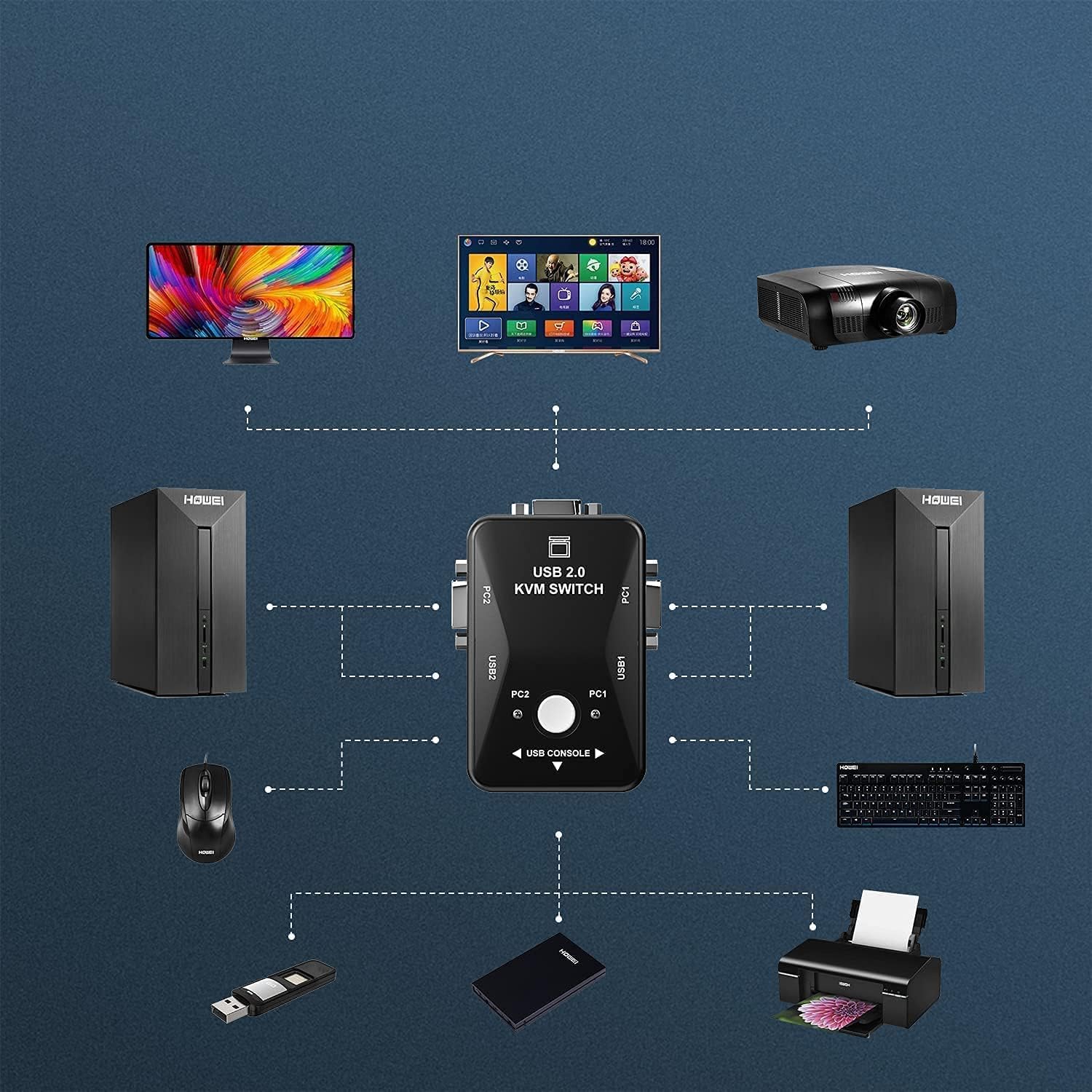 SWITCHING CONTROL: Quick computer switching via hotkey commands or manual button press for seamless workstation management