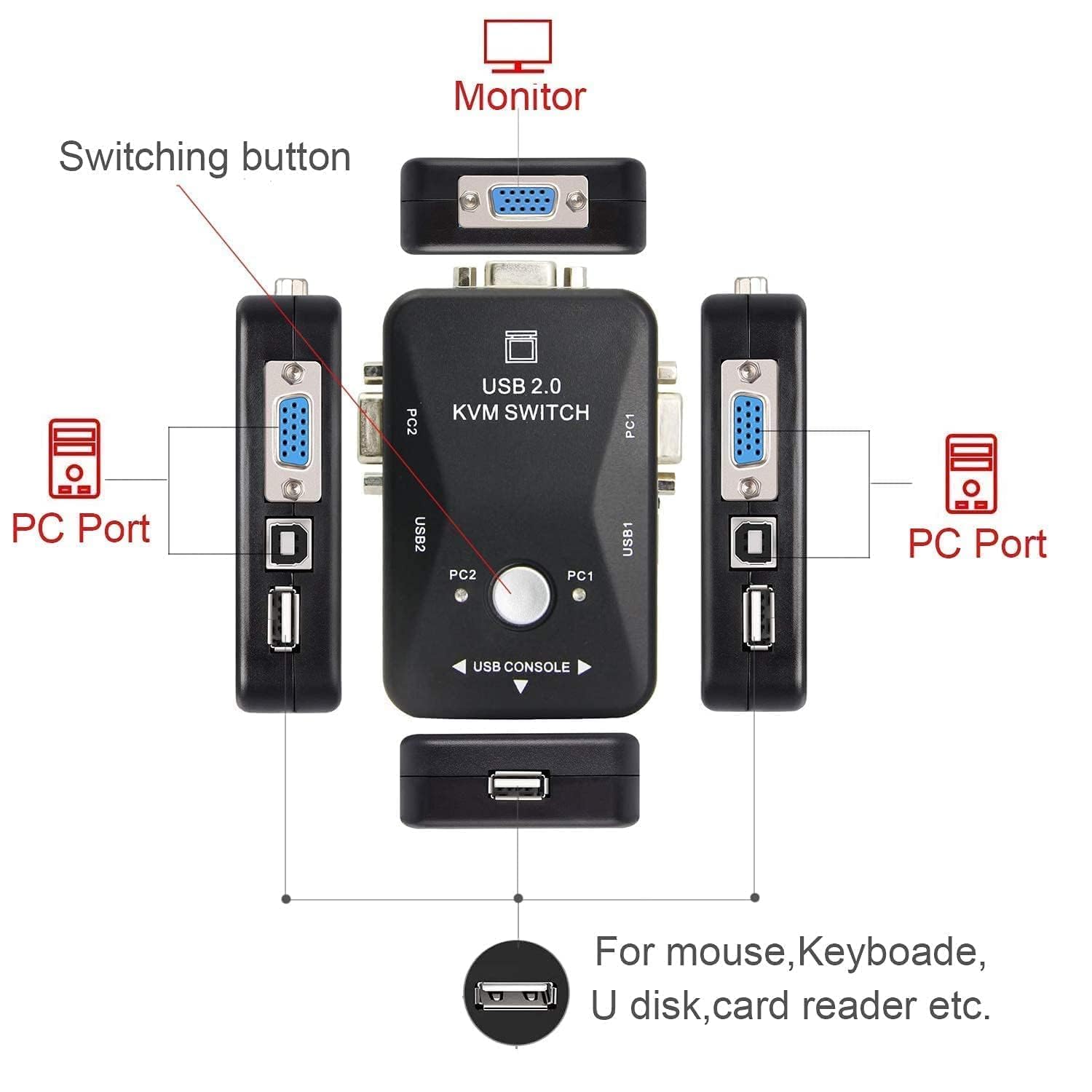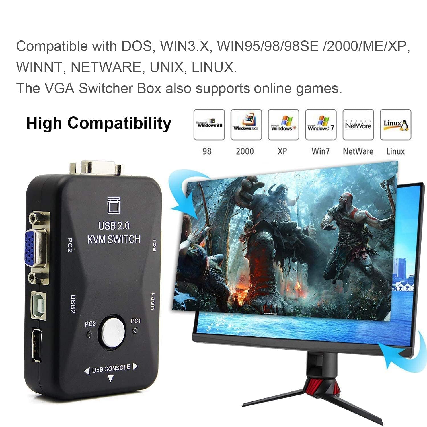 COMPATIBILITY: Supports sharing of 2 computers/CPUs with a single monitor, keyboard, and mouse setup through USB connections