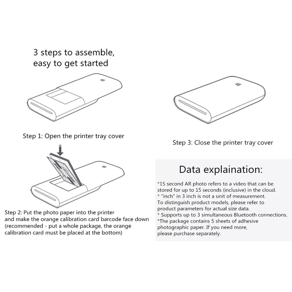 2 x 3″ Photo Paper Inkjet Printer Paper for Xiaomi Mi AR Printer 50 Pieces