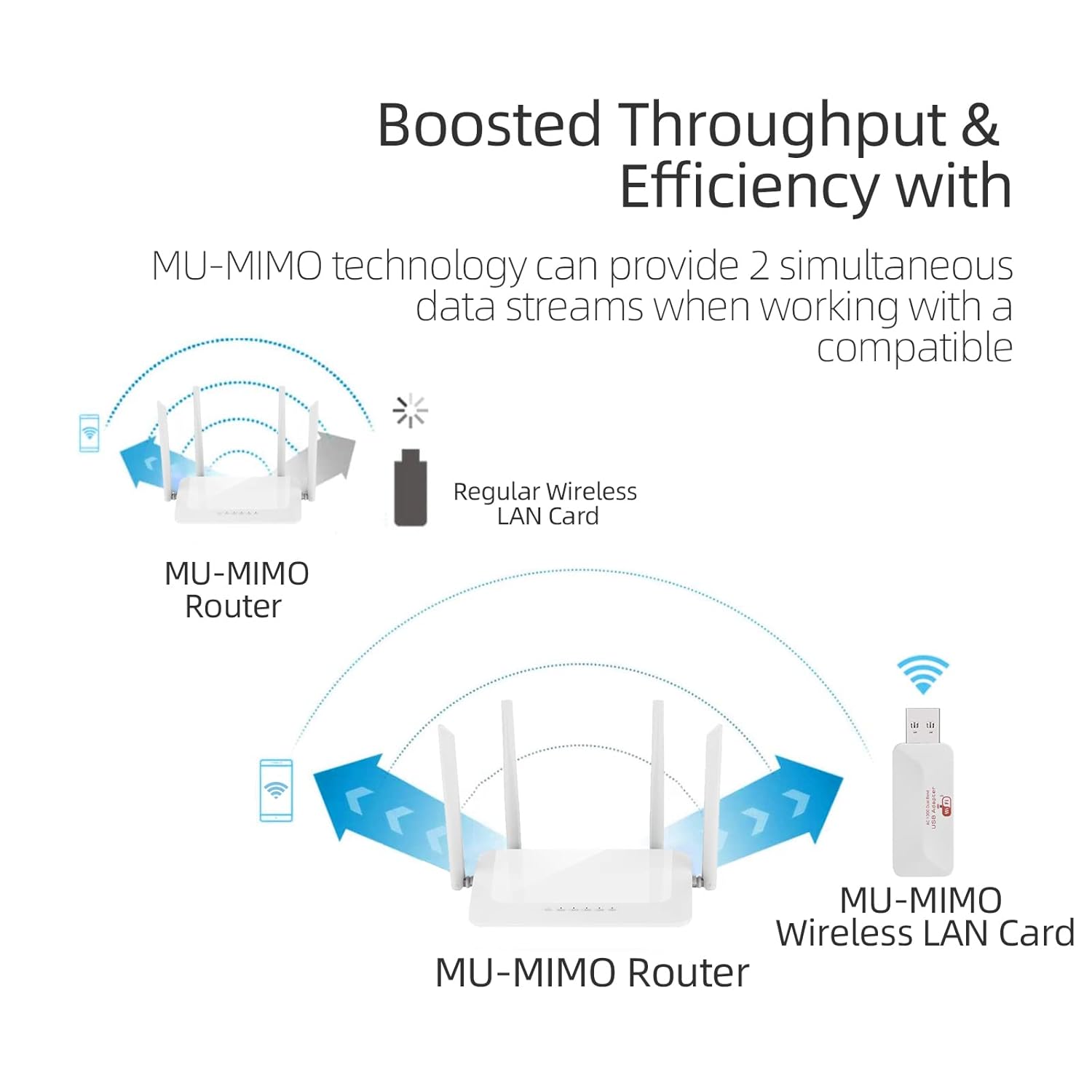 MU-MIMO and USB3.0: The AC1300 wifi usb also offers MU-MIMO, which provides beamforming connectivity for a lag-free Wi-Fi experience. USB3.0 offers speeds up to 10x faster than USB2.0 and can fully meet the AC1300 Wi-Fi speed transfer requirements.