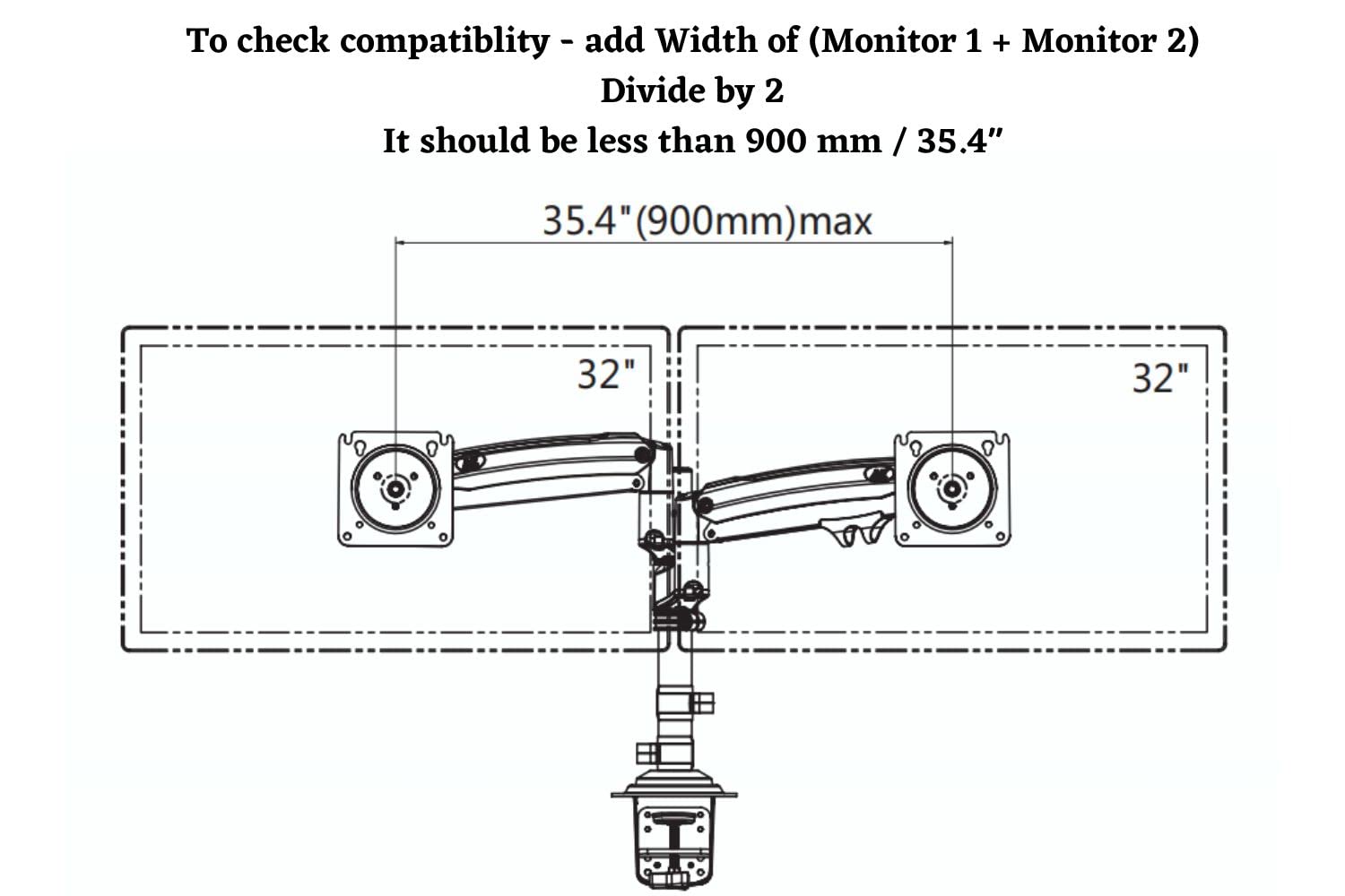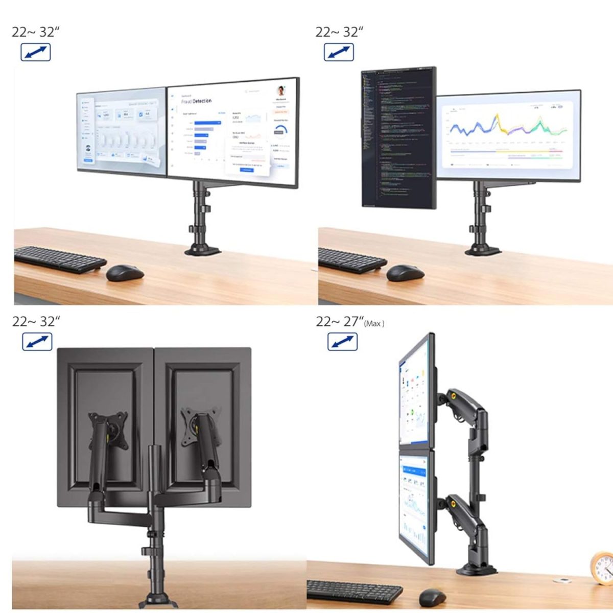 Fits Two Screens of most 17″ to 27″ displays in various configurations and easy to position and align.