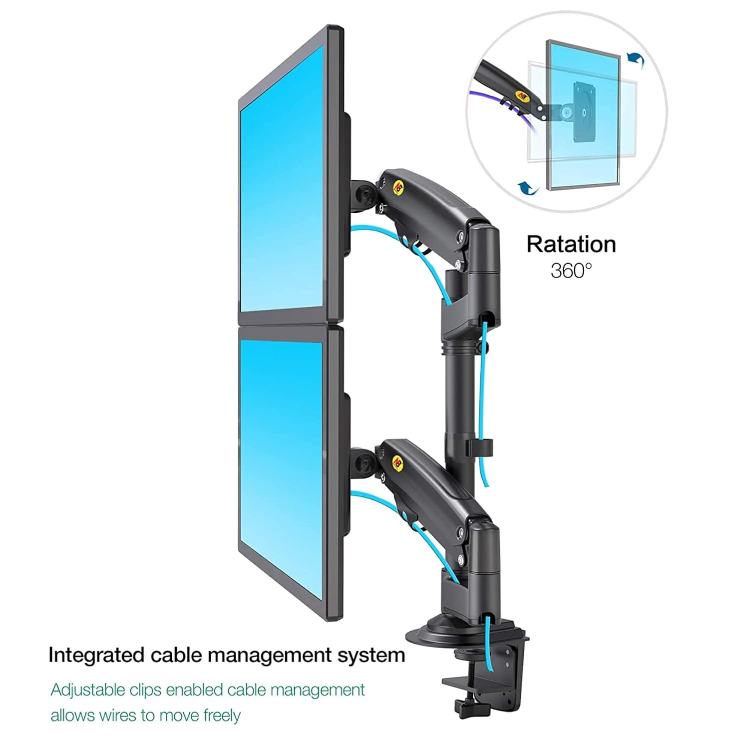 VESA compliant 75 x 75, 100 x 100 mm – Including cable management for a neat desktop.