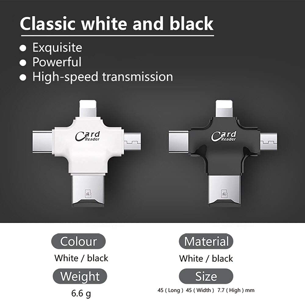 Package Content : 1 Pcs 4 in1 OTG Card Reader (Lightning Type C Micro USB USB Card Reader)