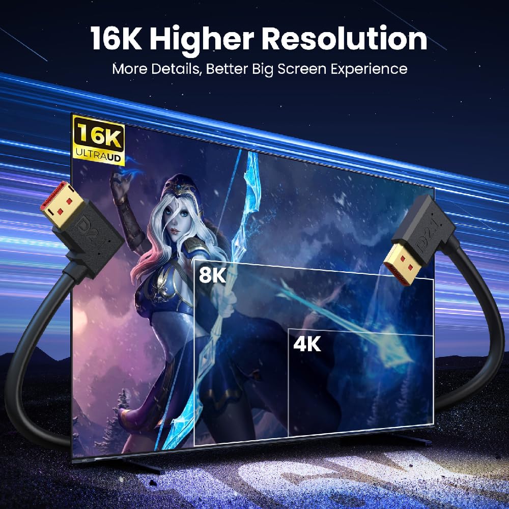 Kework 1.6ft DisplayPort 2.1 version Cable, 52Gbps bandwidth, 3D video, supports 16K@30Hz, 8K@120Hz, 4K@4K@240Hz 4K@165Hz 4K@144Hz, male to female