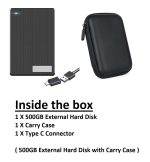 500GB External Portable Hard Disk with Carry Bag 2-in-1 Type C & USB 3.0 High Speed Ultra Slim HDD Drive Compatible with PC, Mac, Laptop, PS4, Xbox, iPad, Tablet, Mobile (500GB External HDD with Carry Bag)