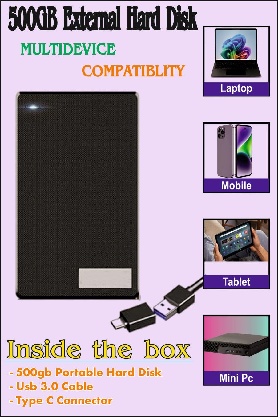 External Storage Drive: Expand your storage instantly with our Portable Hard Drive. Perfect for on-the-go, it lets you carry movies, music, games, photos, and large files wherever you need them