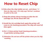 4) How to Reset Chips: When the chip totally run out,and shows”x” on the screen,then take the cartridge out,filling ink about 90% full,and then re-install it back again.Press the red lighting button,then the printer will come to self-cleaning procedure,so you will see the chip works again. Throughout the process,please keep the printer turn on.