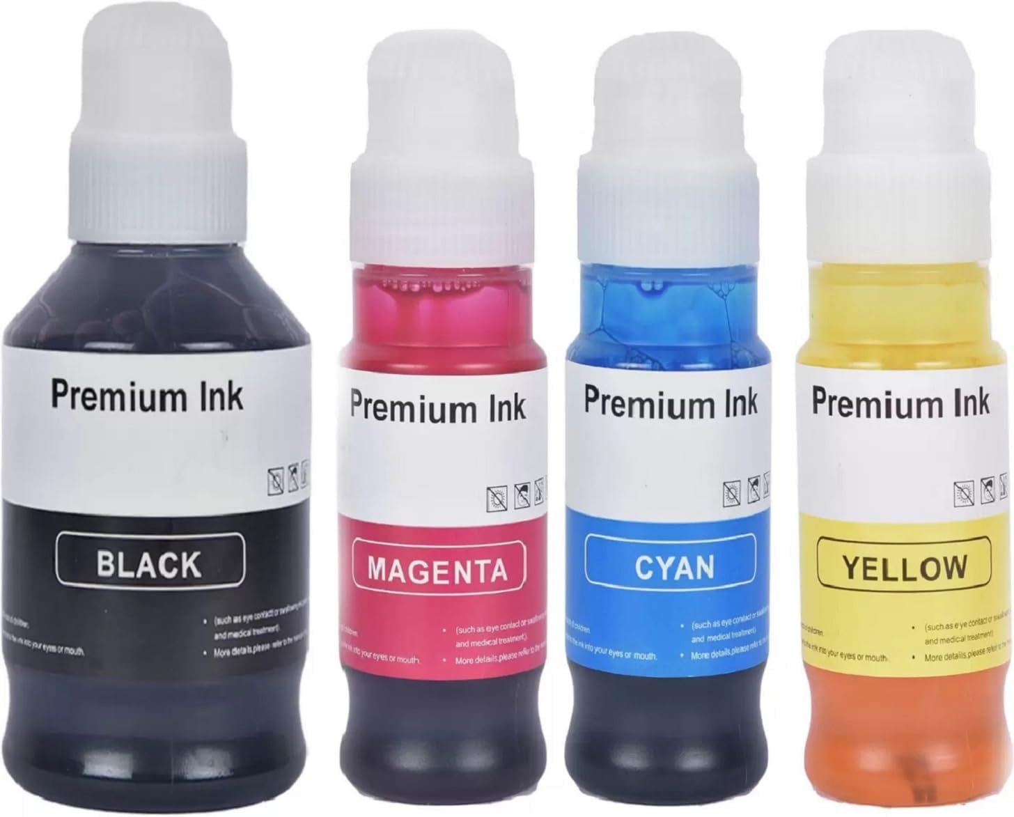 High Yield Ink Capacity: The black ink bottle contains 135g of ink while the cyan, magenta and yellow bottles each contain 70g, providing a high ink yield at a low cost per page.