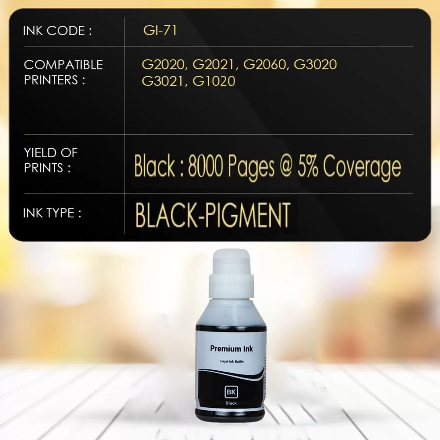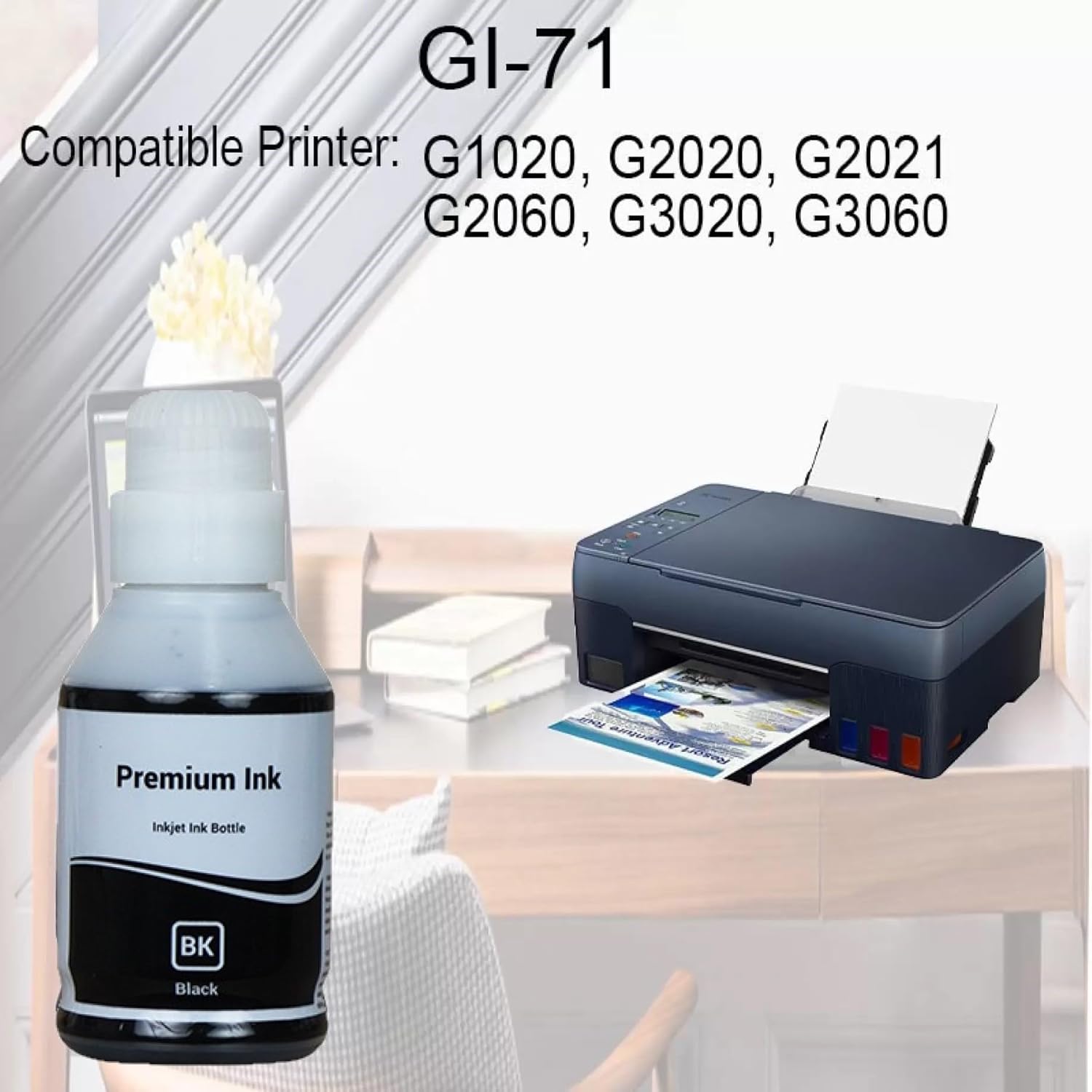 TEQUO 71 Compatible Refill Ink for Canon Pixma G2020, G2021, G2060, G3020, G3021, G1020 Printer – (PGBK x 135ml) (C/M/Y x 70ml) Ink Bottle Set – 502368