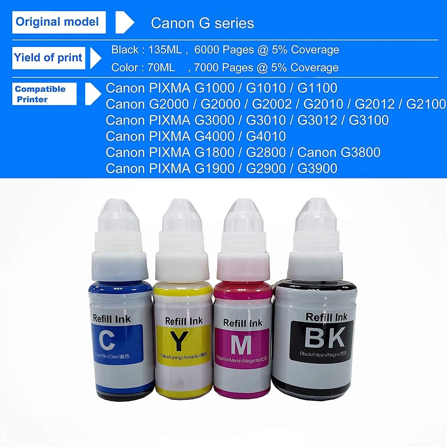 Printer Specific ink for Canon G1100/ G2100/ G3100/ G4109/ G1110/ G2110/ G3110/ G4110/ G1200/ G2200/ G3200/ G4200/ G4210/ G1400/ G1410/ G1411/ G2400/ G2410/ G2411/ G3400/ G3410/ G3411/ G4400/ G4410/ G4411/ G1501/ G2501/ G3501/ G4501/ G1510/ G2510/ G3510/ G4510/ G4511/ G1000/ G1010/ G1310/ G2000/ G2010/ G3000/ G3010/ G3310/ G4000/ G4010/ G1800/ G2800/ G3800/ G4800/ G1810/ G2810/ G3810/ G4810/ G1900/ G2900/ G3900 Printer.