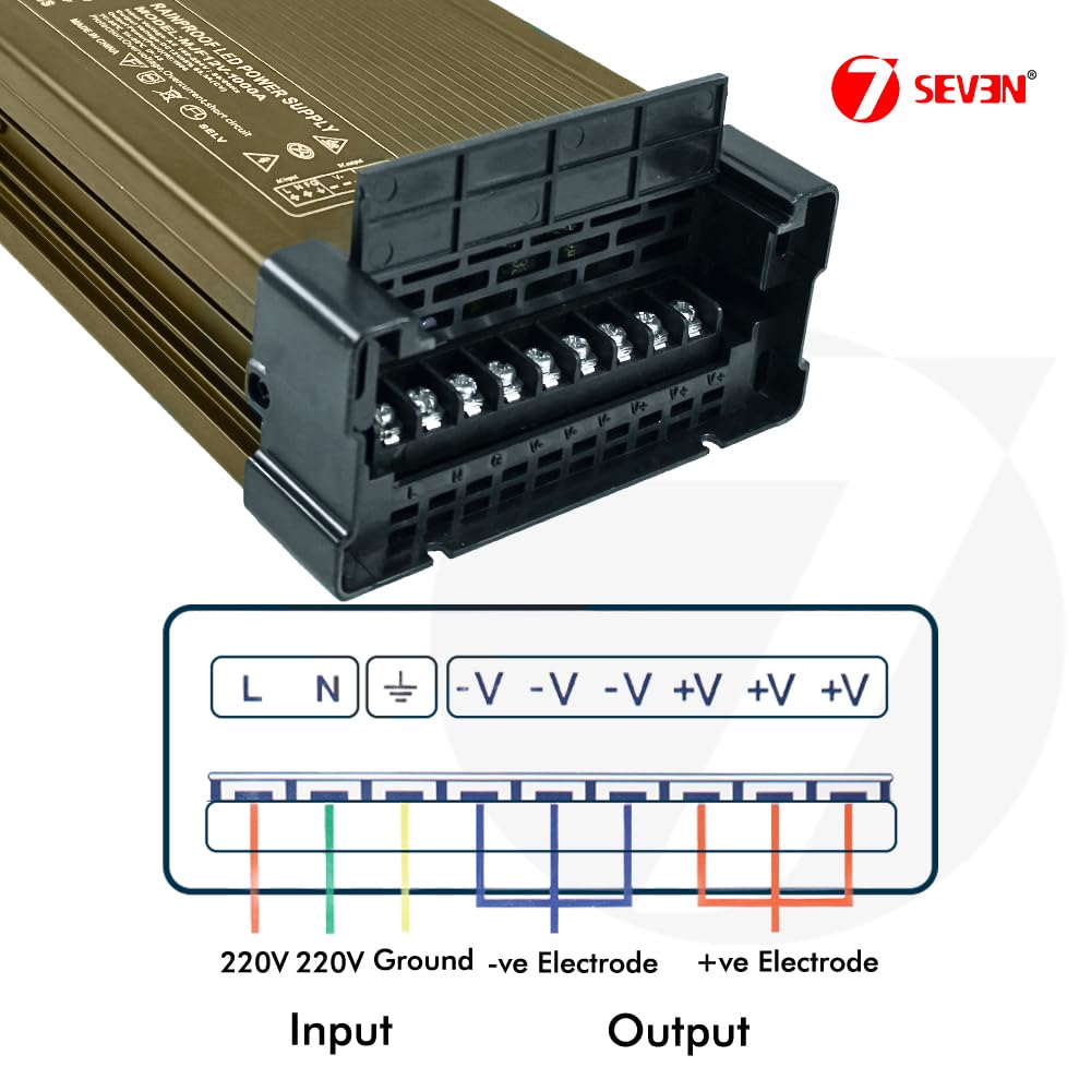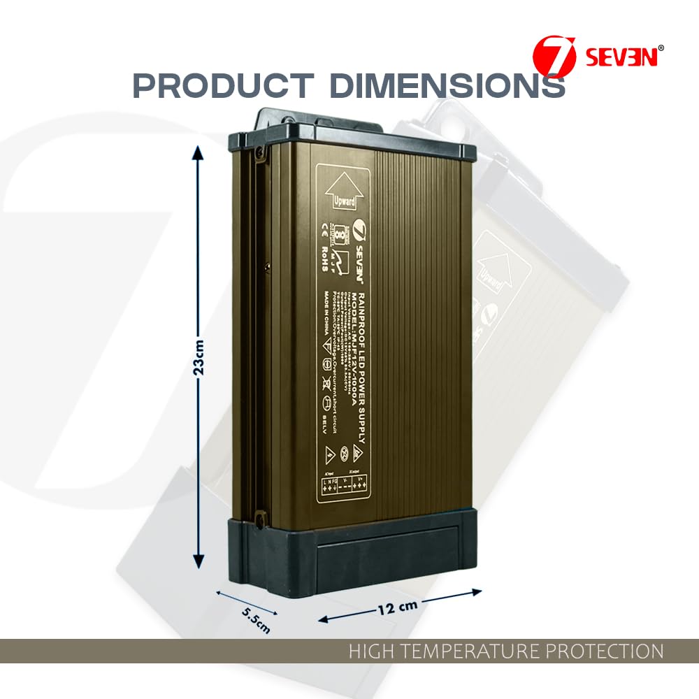 【12v 1000W SMPS Rainproof】: Ensure that the SMPS has an IP43 rating, which signifies its level of protection against water and solid ingress. In the case of IP44, it’s protected against splashes of water from any direction and solid objects larger than 1mm in diameter.