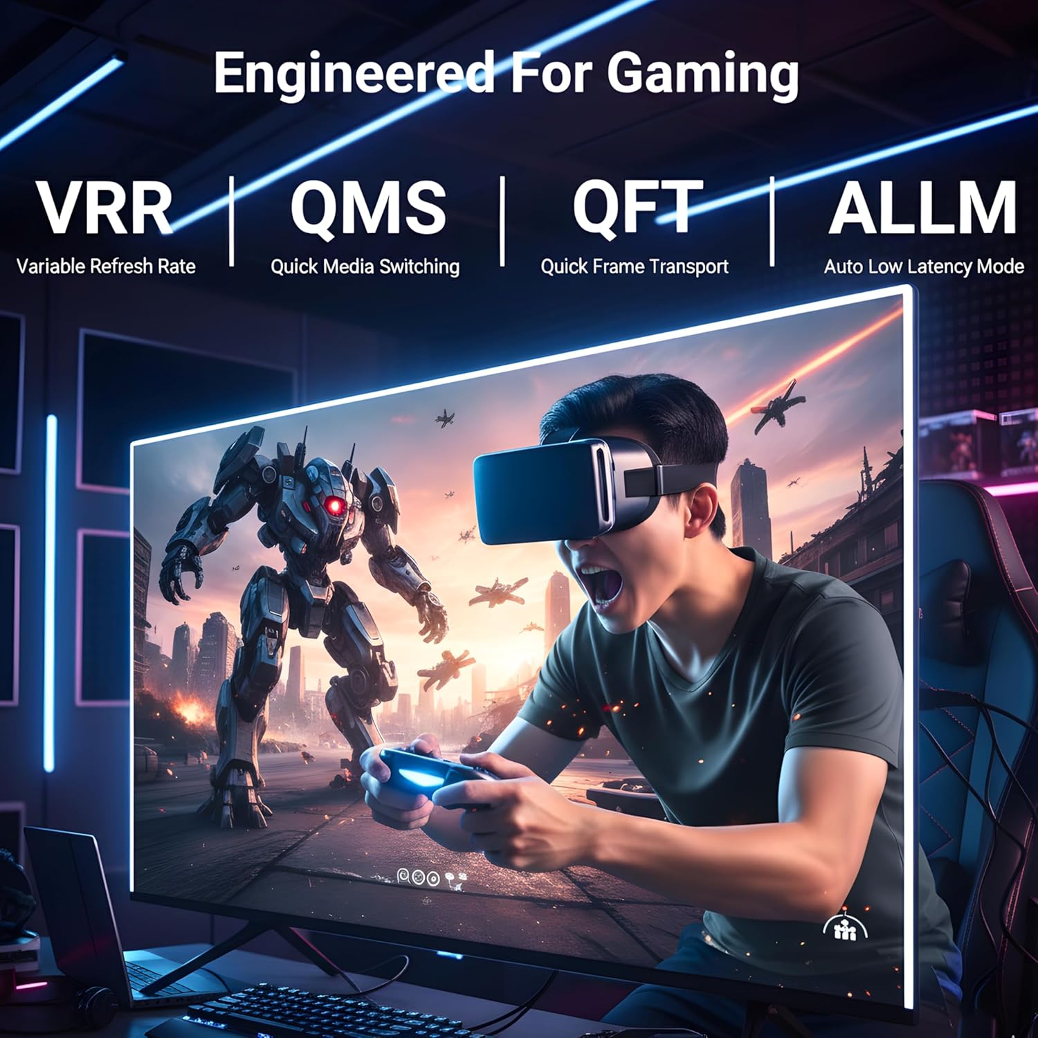 Best Gaming HDMI Cable for PS5, Xbox Series X & PCs Equipped with VRR (Variable Refresh Rate), ALLM (Auto Low Latency Mode), QFT, and QMS, this HDMI cable ensures responsive and ultra-smooth gameplay. Ideal for gaming monitors, PS5, Xbox Series X/S, and graphics-intensive PC setups.