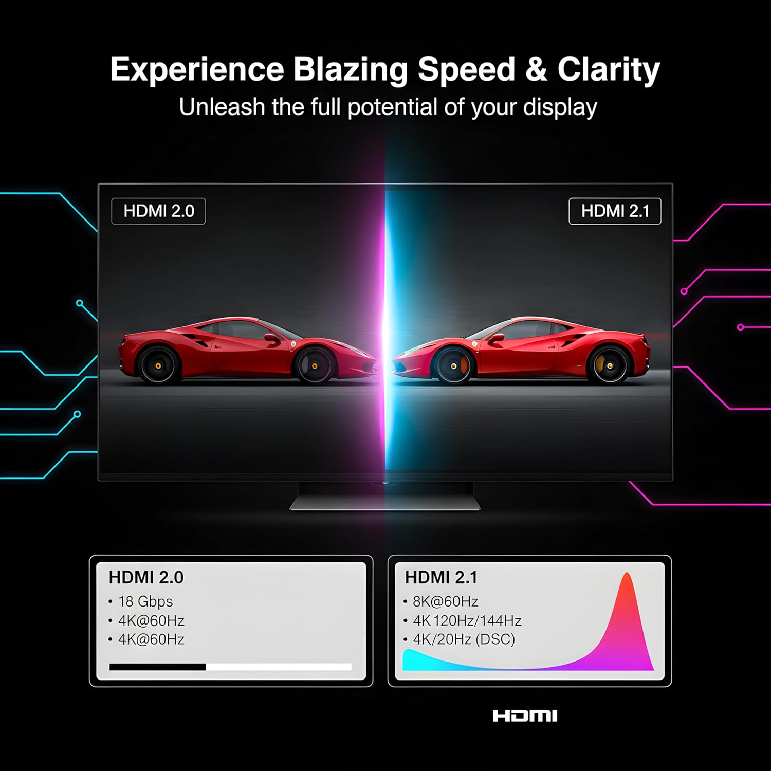 Seamlessly Connect With Our HDMI 2.1 Cable Designed For True Plug-And-Play Convenience. No Setup Required; Simply Plug It In For Instant 8K@60Hz Or 4K@120Hz Visuals, Immersive Audio, And Ultra-Fast Performance.