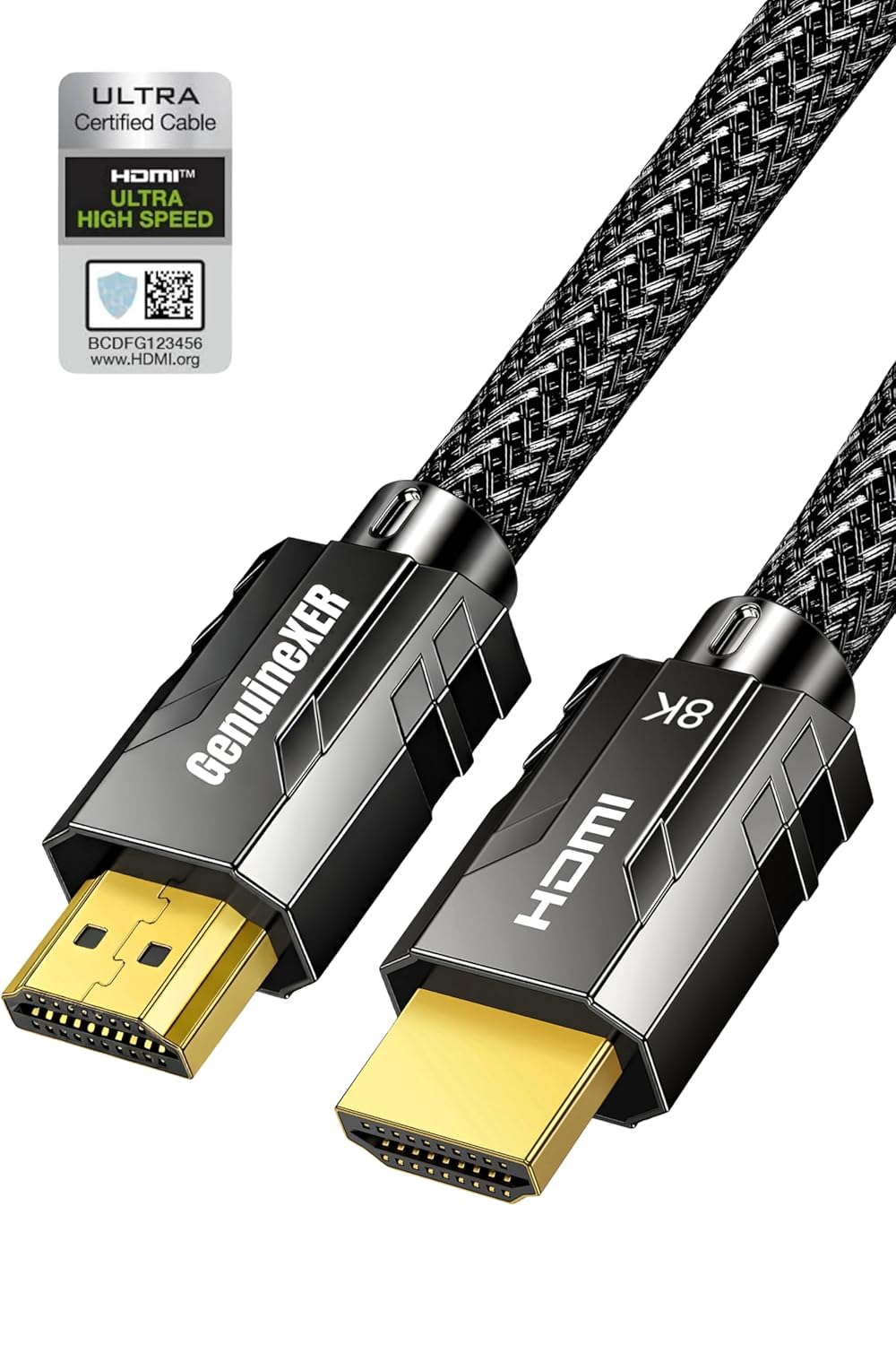 HDMI 2.1 Cable Certified by HDMI Association – 48Gbps Speed The GenuineXER HDMI 2.1 cable is officially HDMI Association certified, supporting ultra-high-speed 48Gbps bandwidth. Enjoy smooth transmission for 8K@60Hz, 4K@120Hz, and HDR content without lag or frame drops. Ideal for 4K smart TVs, LED TVs, and 8K projectors.