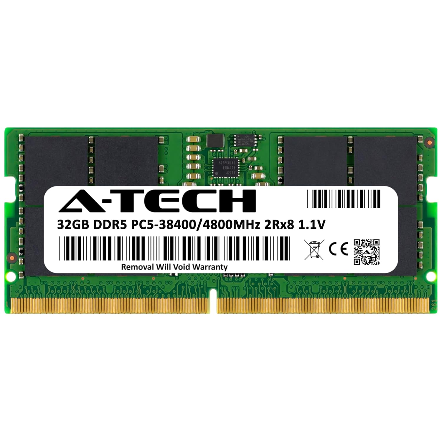 Single 32 GB RAM Module; DDR5 SO-DIMM 262-Pin; Speeds up to 4800 MHz, PC5-38400 (PC5-4800B)