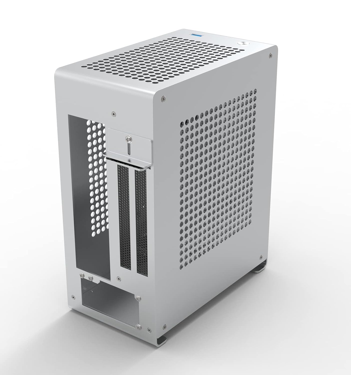 Micro Size Super Compact: 5.8L capacity full aluminum Mini-ITX case with super micro A4 paper size(200*114*253mm/7.87×4.29×9.96 inch), breaking the traditional sense of desktop computer size