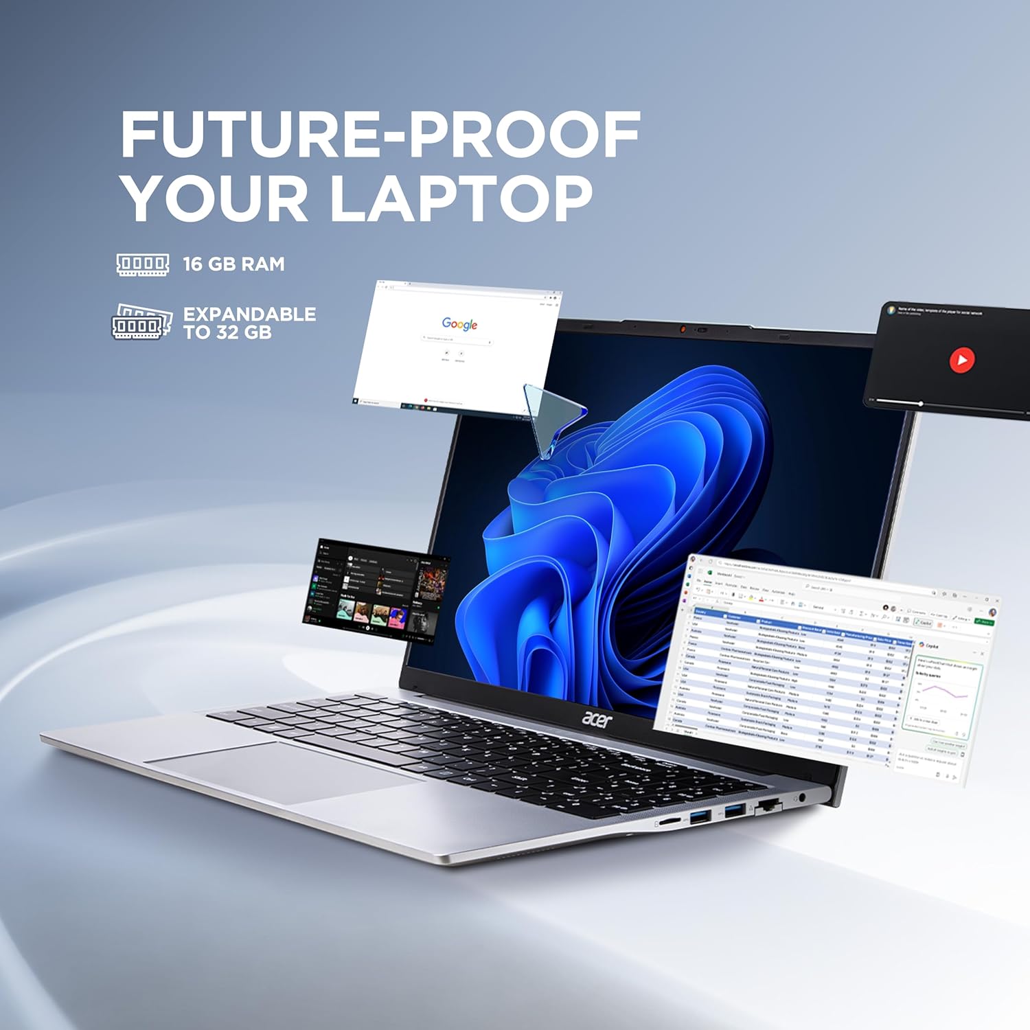Acer Aspire 3 12th Gen Intel Core i3-1215U Premium Laptop (16GB RAM/512GB SSD/Windows 11 Home) A325-51,15.6″ Full HD IPS Display, 54Whr Battery, Silver, 1.69 Kg