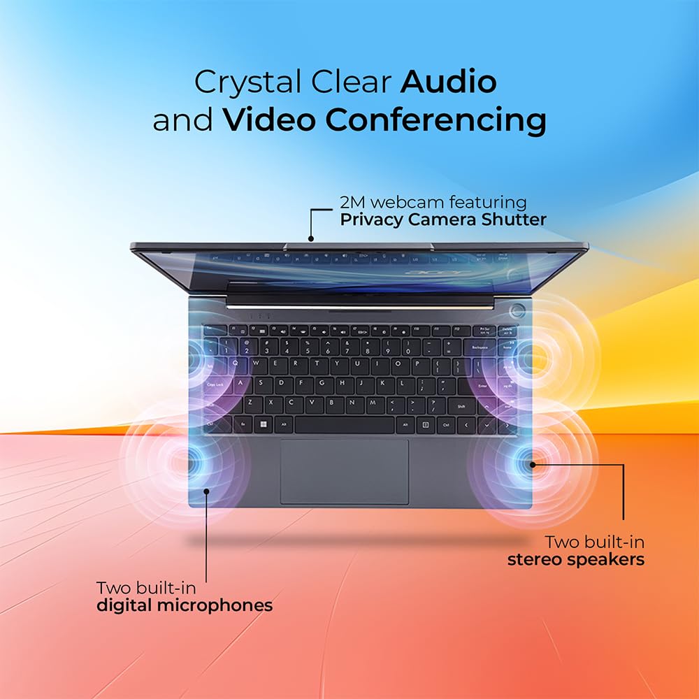 Webcam: Video conferencing with 2M With Privacy Camera Shutter, Wifi 6 with Dual Band (2.4 GHz and 5 GHz), Support Bluetooth 5.2, 45.6 Wh (2-cell Li-ion) battery