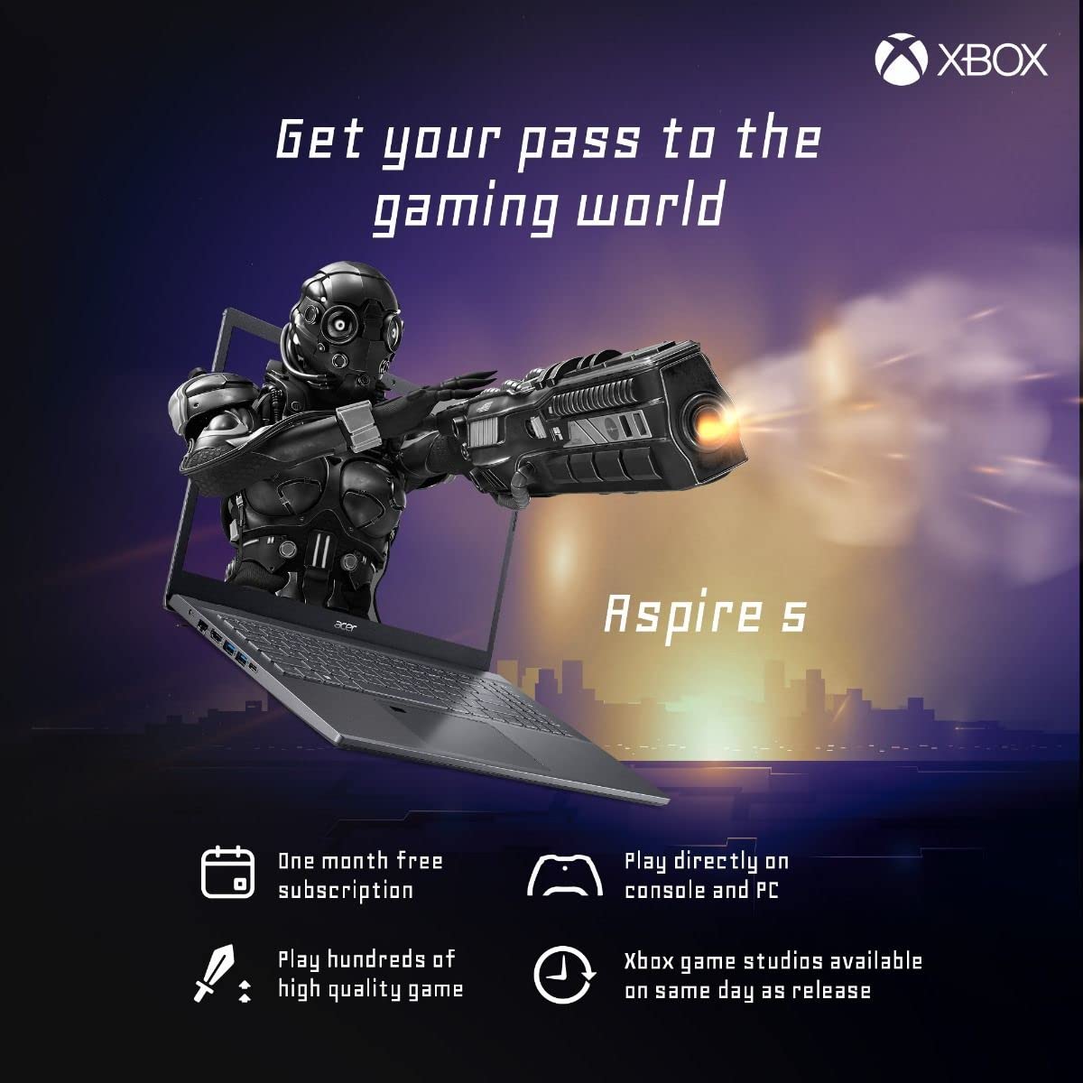 The Aspire 5 features a metal cover and an elevating hinge design with ergonomic features letting you play in your comfort. Now you can also take your game anywhere with the lightest gaming laptop