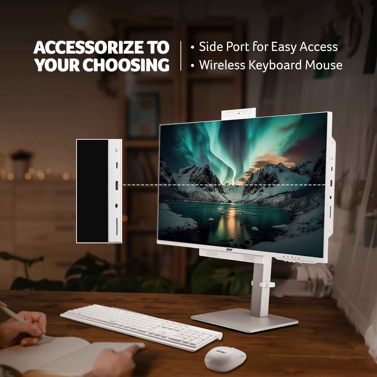 Acer AIO comes with Intel Core i5 Processor along with 16GB RAM and 1 TB SSD. The product has an attractive 27″ IPS Display along with a highly attractive Webcam, Wireless Keyboard and Mouse.