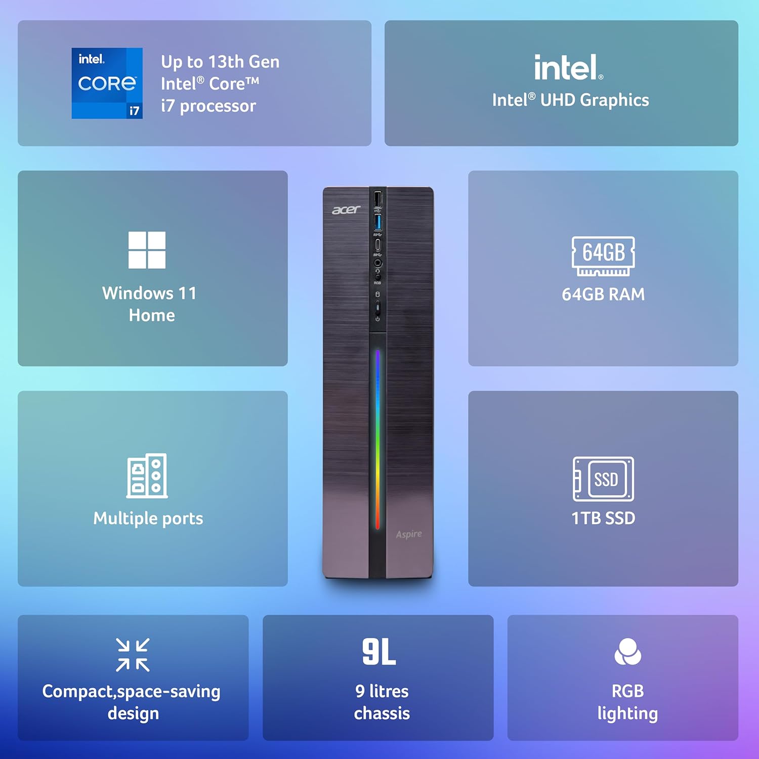 Acer Aspire XC-1760 Core i7 12700 Processor Desktop (Windows 11 Home/16 GB/ 512 GB SSD/Intel UHD Graphics) MSO, Black