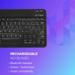 Designed for ultimate versatility, this keyboard and mouse are compatible with tablets, phones, notebooks, and desktops. The keyboard boasts a sleek, ultra-slim design with 78 keys and an anti-slip back mat for stable typing