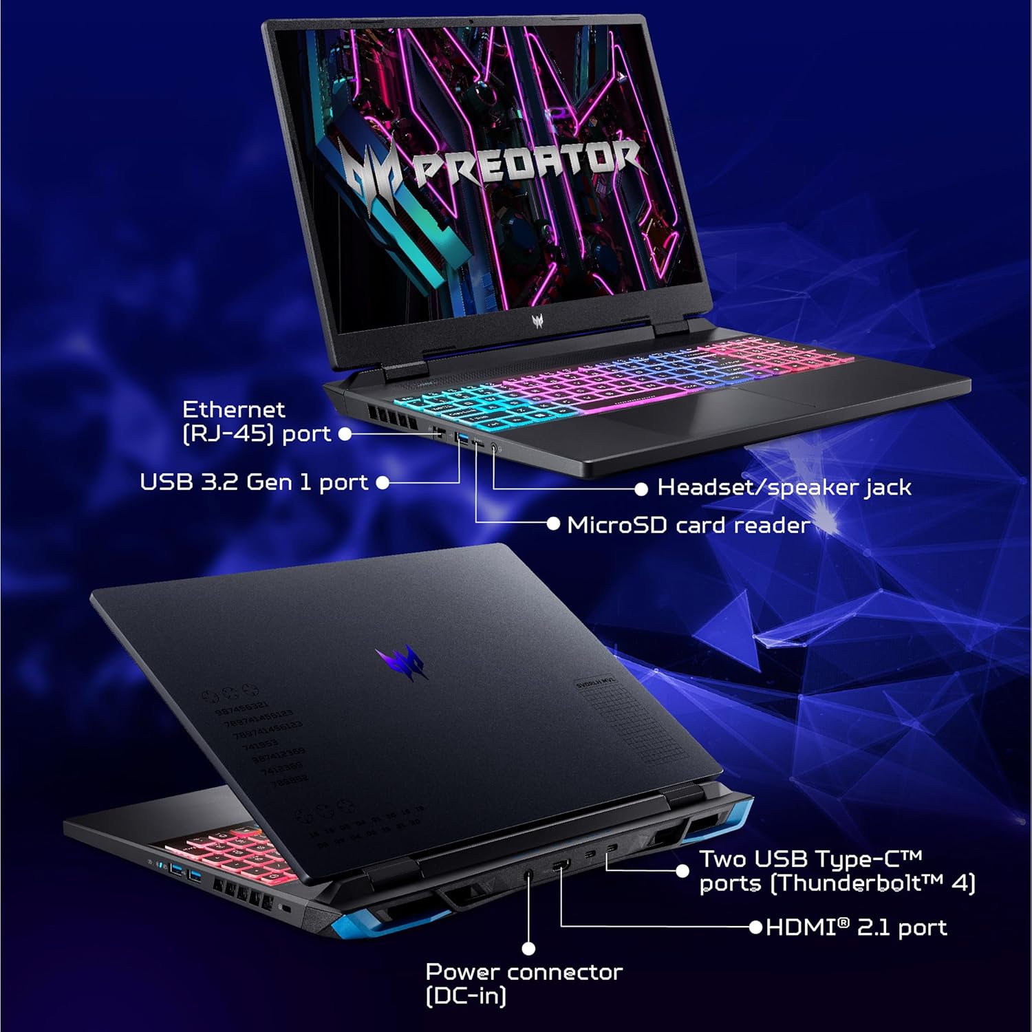 Make your laptop shine with the 4-zone RGB backlight, use the mode hotkey to fit your situation (quiet time or playtime), and open PredatorSense with a single press of a key. Mix and match colors to your heart’s content and Choose from four modes3: Quiet, Balanced, Performance, and Turbo or Balanced and ECO4 when relying on battery alone.