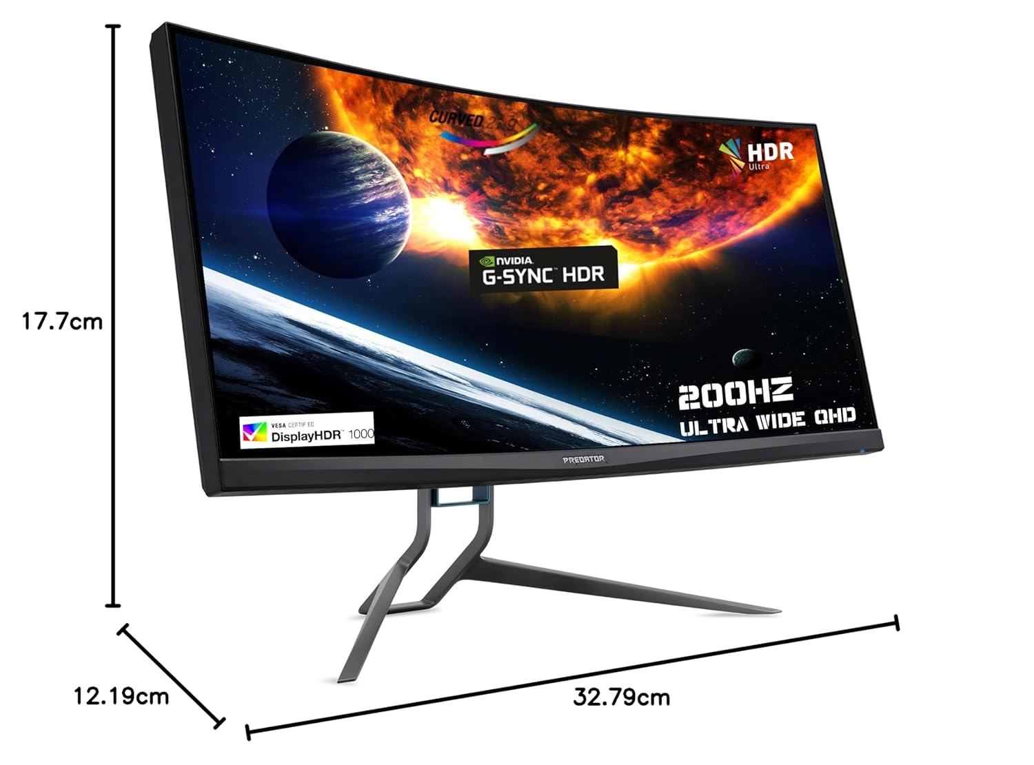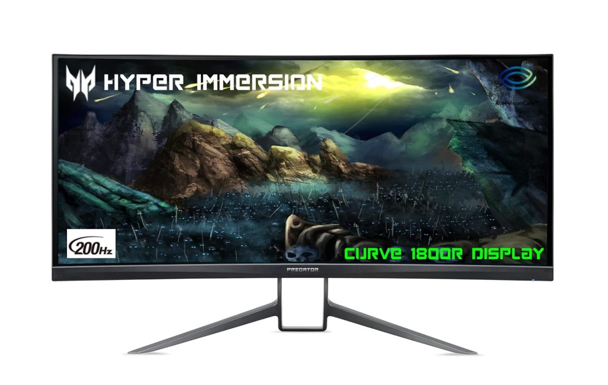 Hyper Immersive 35 Inch WQHD (3440 x 1440) I 1800R Curved I 21:9 aspect ratio I Zero Frame Design Fast 200Hz Refresh rate I 2ms G to G response Time I NVIDIA G-SYNC Ultimate provide tear-free gaming Quantum Dot Technology I 90% DCI P3 wide color gamut | 10bit color I VESA certified display HDR 1000 Connectivity Ports: 1 x Display Port, 1 x HDMI, USB Hub 3.0×3 (1up 3down), Audio Out (Display port & USB cables included) Light your display with Acer RGB light sense I 512 full array local dimming zones | Predator game view with 8 modes | 2 speakers at 4 watts per speaker