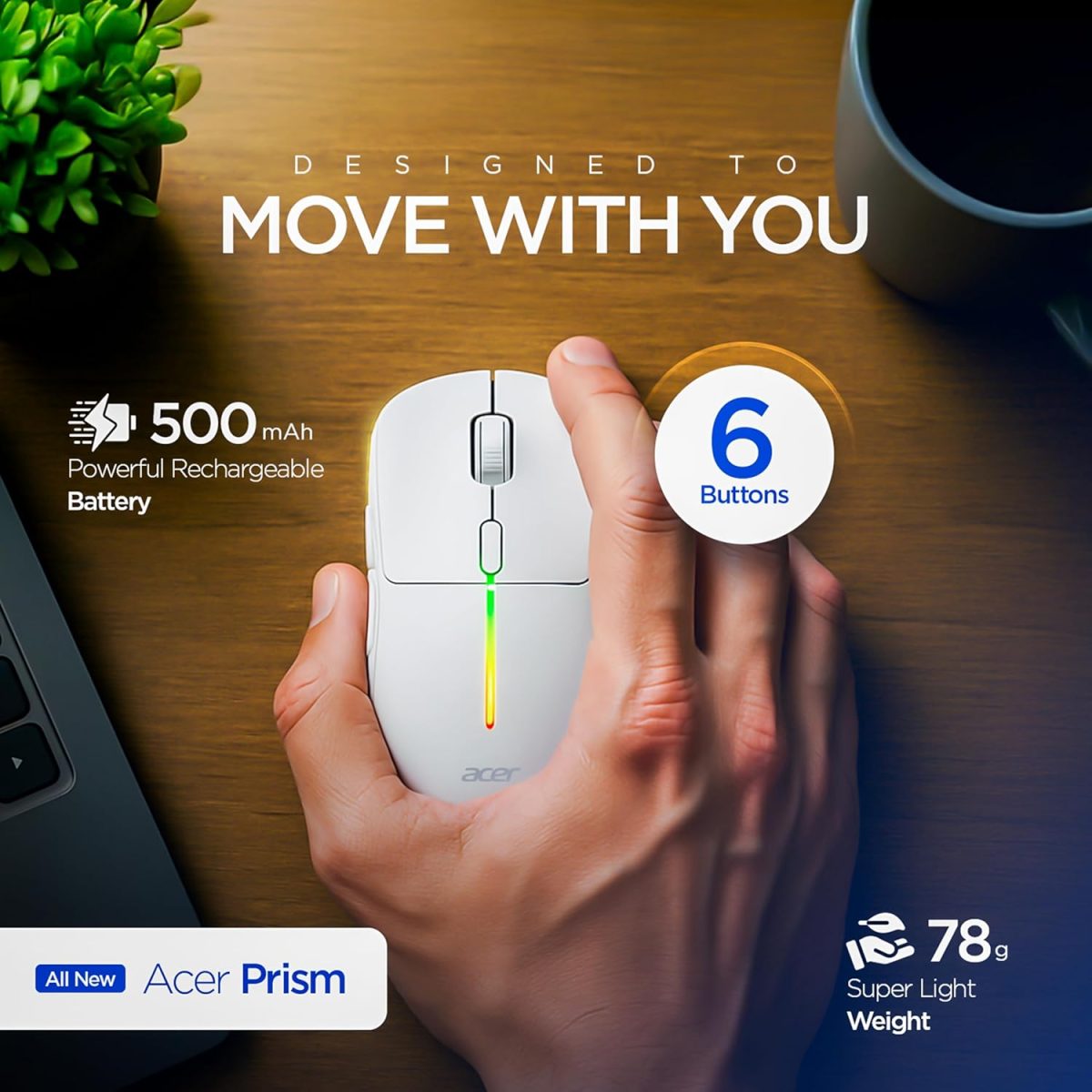 Be the first to review “Acer Prism Wireless Mouse | Dual Mode 2.4GHz & BT 5.1 | 6 Buttons with Scroll Wheel | 800/1200/1600 DPI | Rechargeable 500mAh Battery | Running RGB | Lightweight 73g I Windows & Mac Compatible – White”