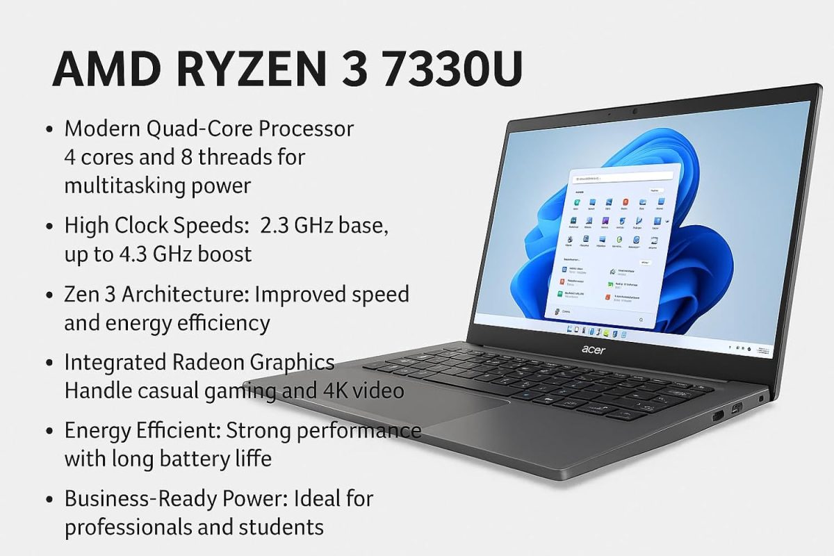 Power-Packed Performance – Equipped with AMD Ryzen 3-7330U for smooth multitasking and reliable speed, ideal for professionals and students alike.