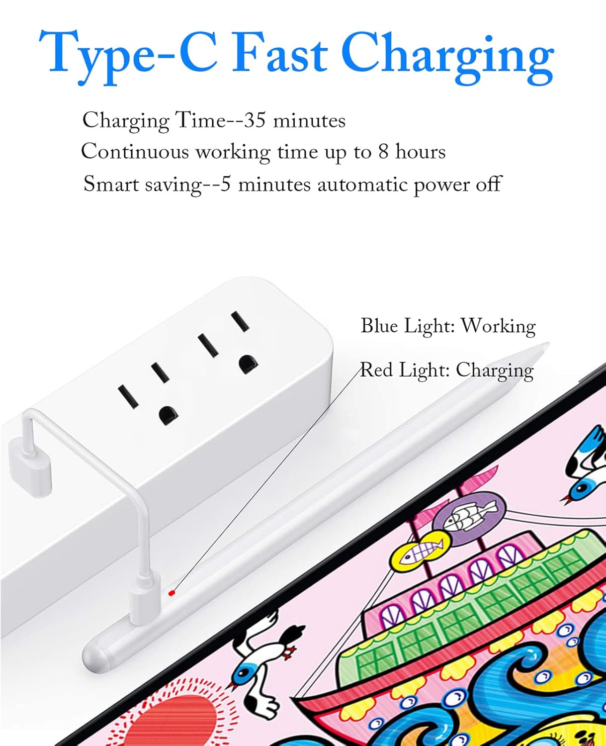 Fast Charging And Low Battery Alertthe Tablet Pen Is Charged With The Latest Type-C Fast Charging Cable, Charging Input Is 5V, Fully Charged In 60-80 Minutes. Iphone Stylus Built-In Battery Provides – 9-10 Hours Active Use. The Battery Is Be Low –The Blink Red, No Need To Guess When The Battery Is Out It Can Also Be Used As A Novelty Gift For Your Family/Friends Around You Who Love To Create.