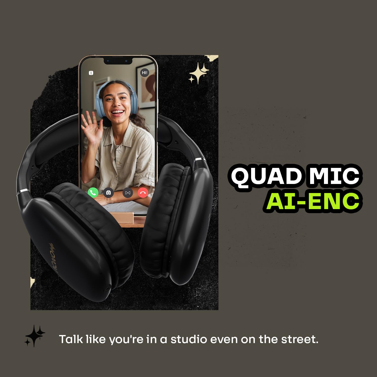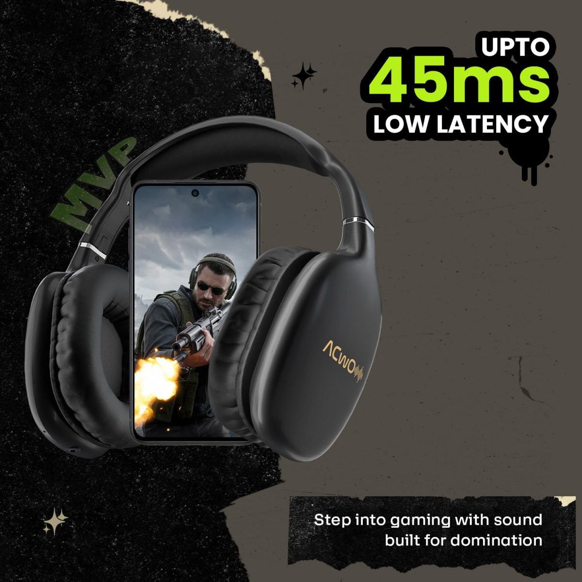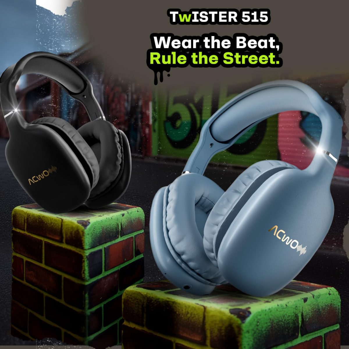 ACwO Twister 515 Wireless Over-Ear Headphones | X-Fidelity Acoustics | 40mm Bass BooMX™ Drivers | ANC 25dB | Dual EQ Modes | 65H Playtime | 45ms Low Latency | AI-ENC Calls | IPX5 – Charcoal Black