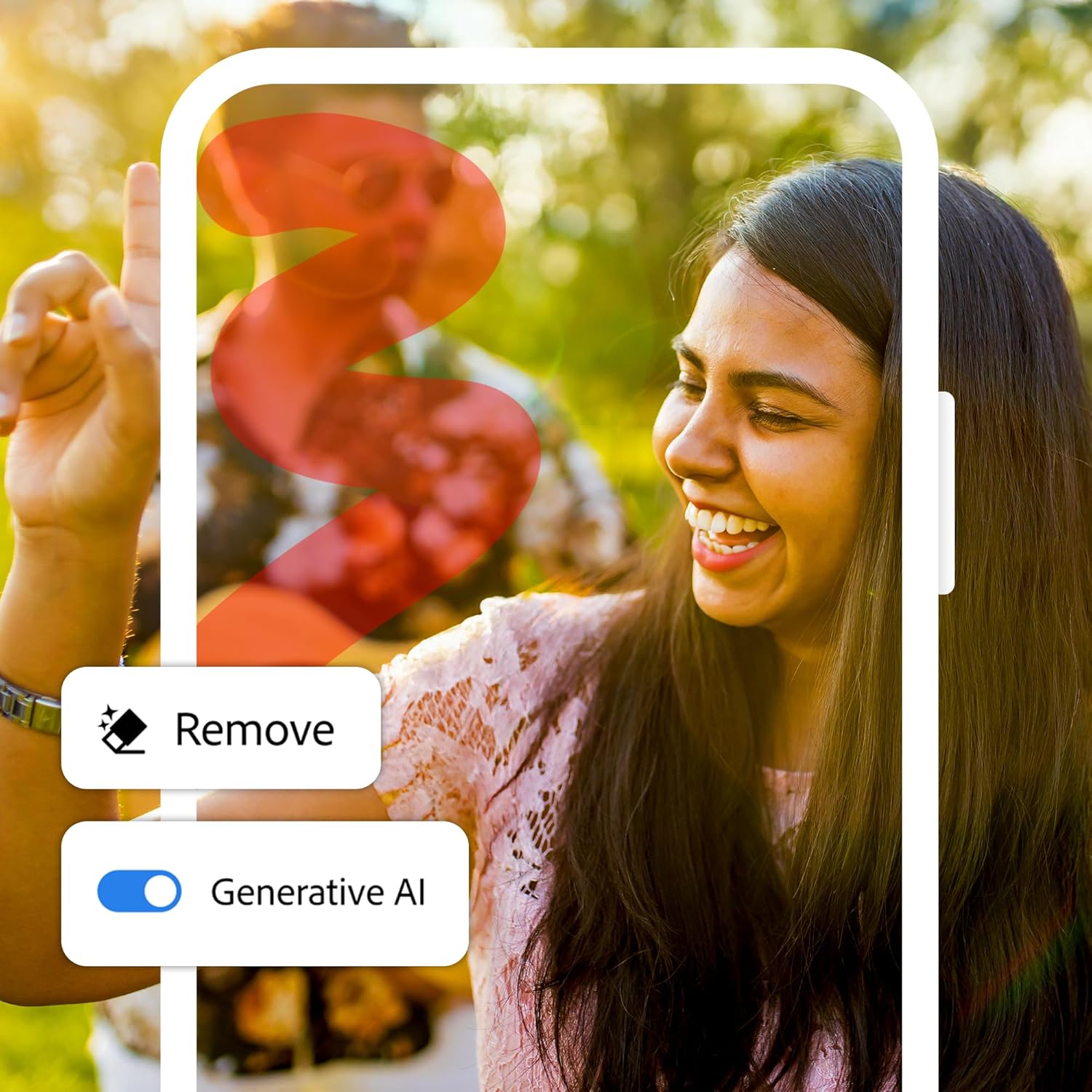 Remove anything in a click. Make distractions vanish with Generative Remove, powered by Adobe Firefly generative AI.