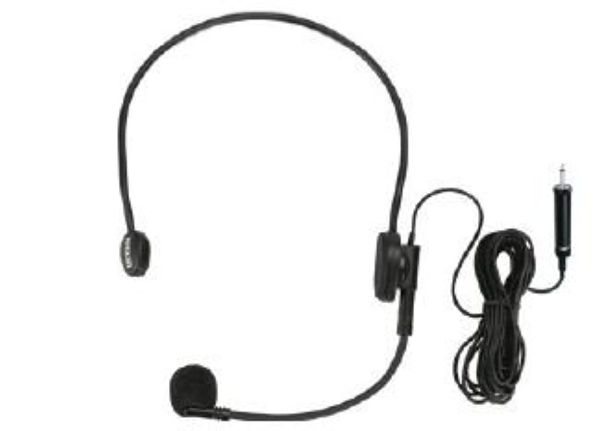 Condenser Headband Microphone supplied with 6m cable and a 1.5V cell container. Suitable for direct connection to an amplifier.