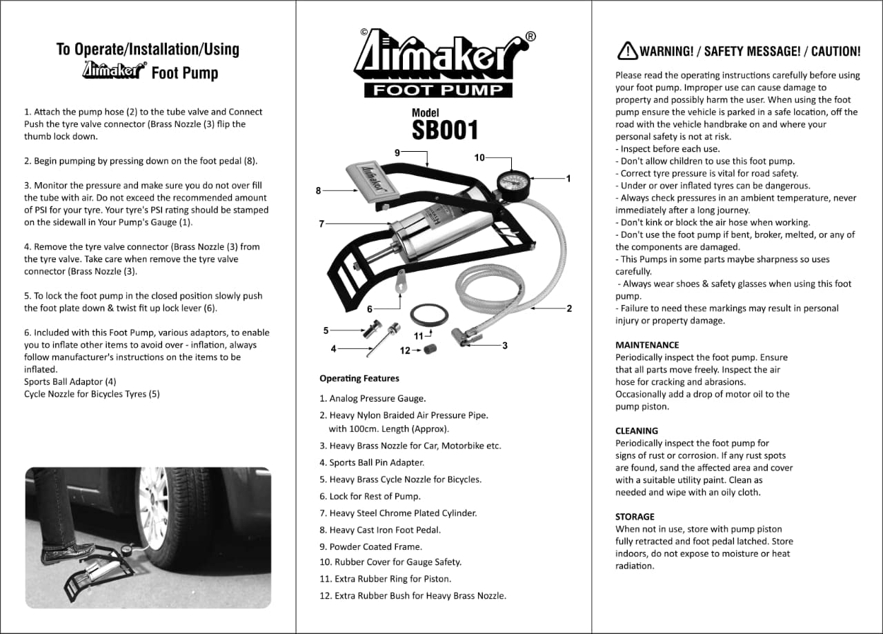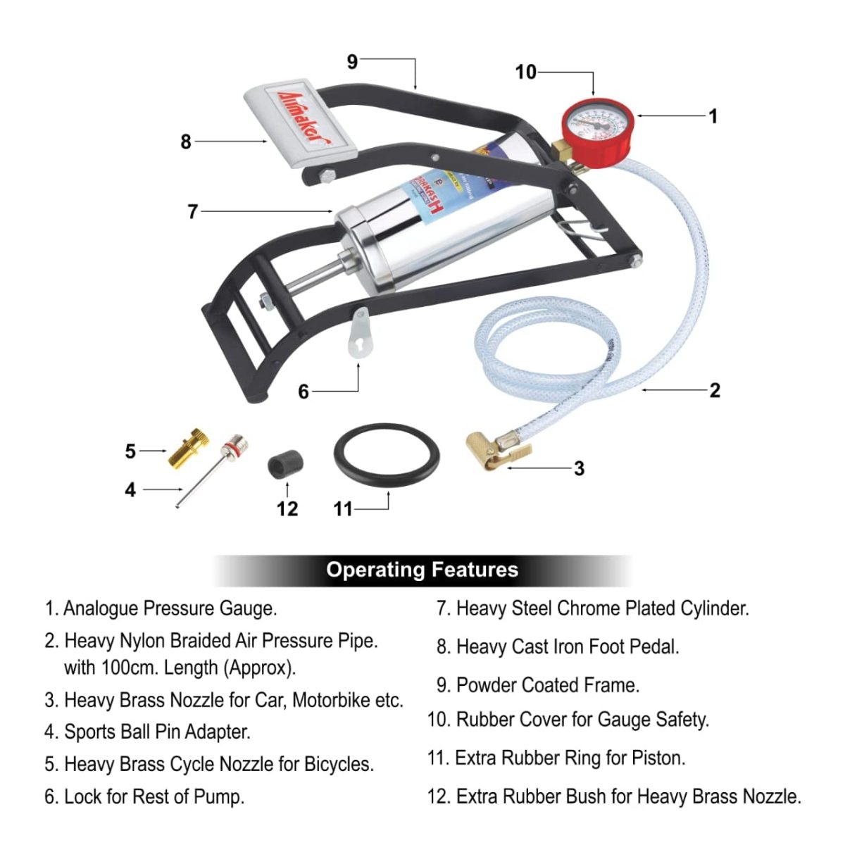 Heavy Steel Chrome Plated Body Cylinder MUTIPLE FUNCTION – Ideal to cars, Tires, motorbikes, cycles, peddle bikes tires and inflatable boats, Basketball, Footballs, air beds. EASY TO USE – This foot pump is so easy to use that can be used by adults as well as by children and the aged family member. EASY TO STORE: Mini in its size and easy could be easily folded, so you can carry it with little space in your car. Foot pedal are anti-skid design, the foot is more stable and not easy to slide when stepping on the air pump, and the safety is more assured.