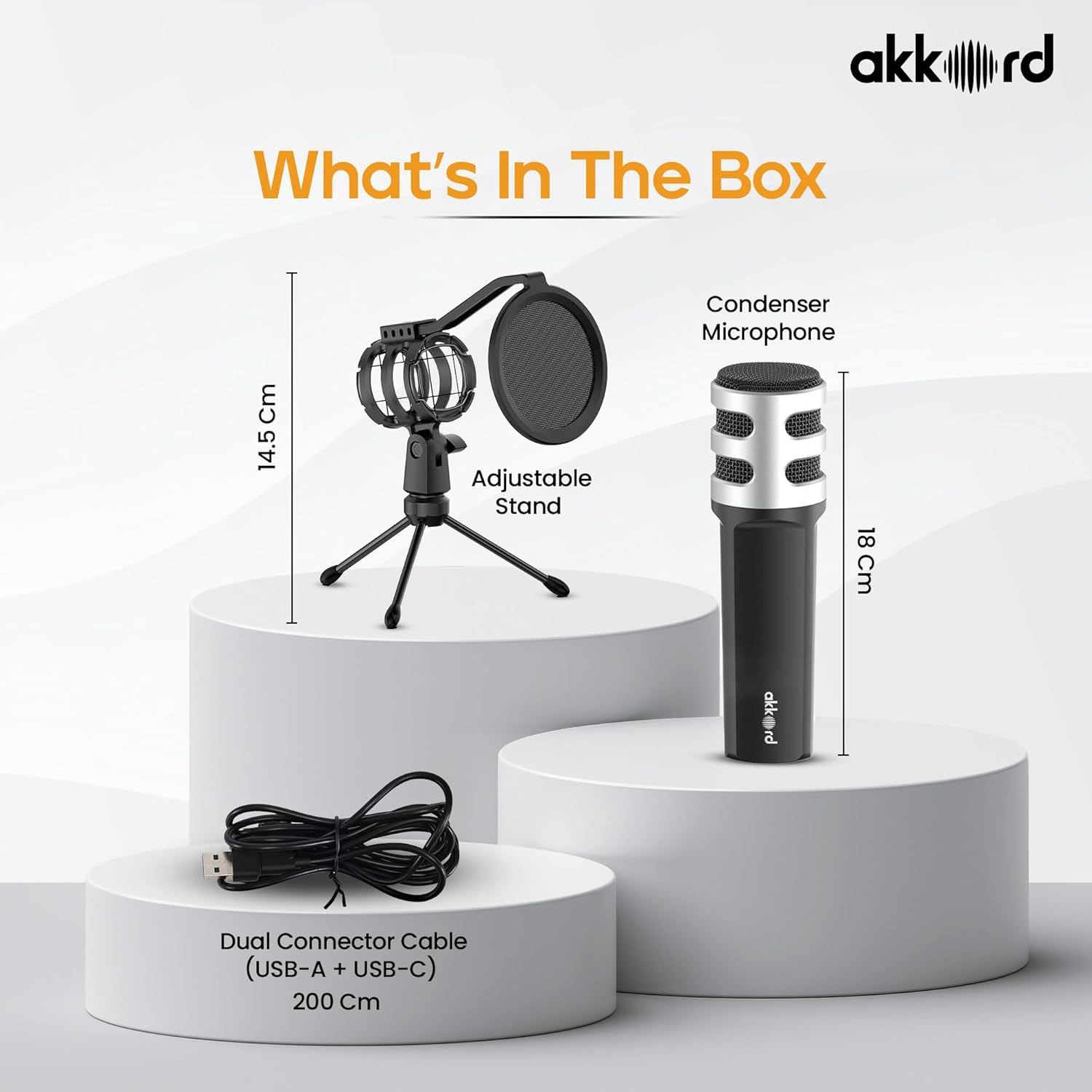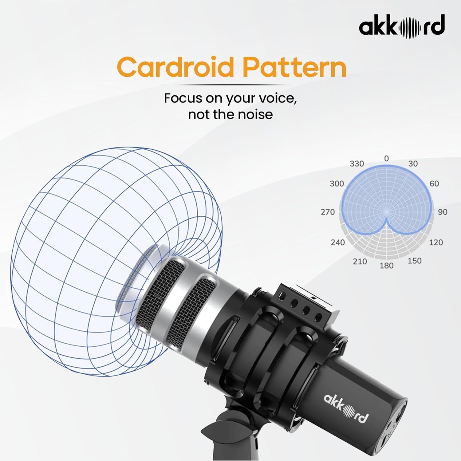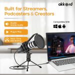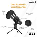 Akkord USB Microphone with Tripod Stand – 192kHz/24Bit Cardioid Condenser Mic, 9.7mm Diaphragm, Plug & Play for Podcasting, Streaming, Voice Recording, Gaming – for PC, Mac, Laptop