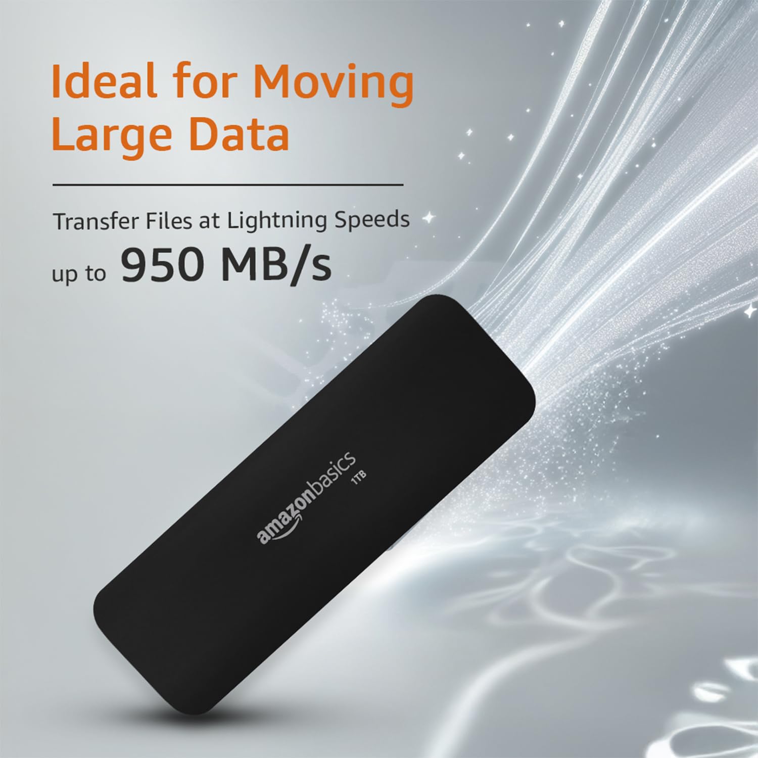 amazon basics 1 TB Portable SSD | Type C Compatible NVMe Drive | Upto 950 MB/s | PC, Mac and Smartphone Compatible
