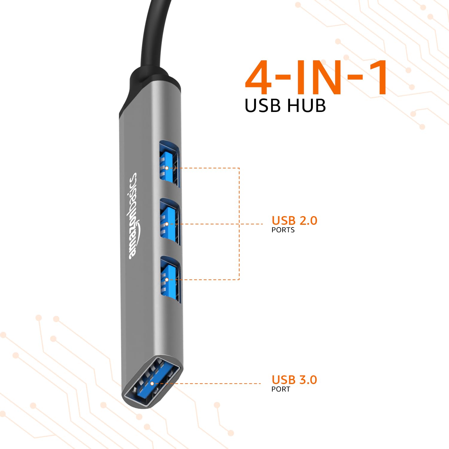 Amazon Basics 4-in-1 Hub Multiport Adapter, USB Hub with Aluminium Shell, 1 x USB 3.0 & 3 x USB 2.0 for PC, MacBook, Mac mini, iMac, Tablet, and Mobile Phones