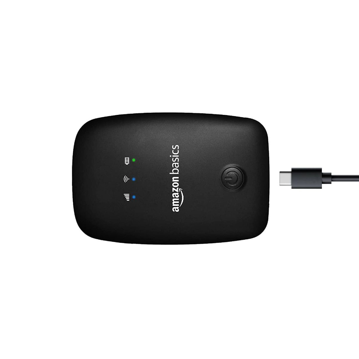 Amazon Basics 4G LTE Wireless Dongle with All SIM Support, Plug & Play USB Data Card with Type-C Connector, 150Mbps WiFi Hotspot, 2100mAh Battery, SIM Adapter Included – Black