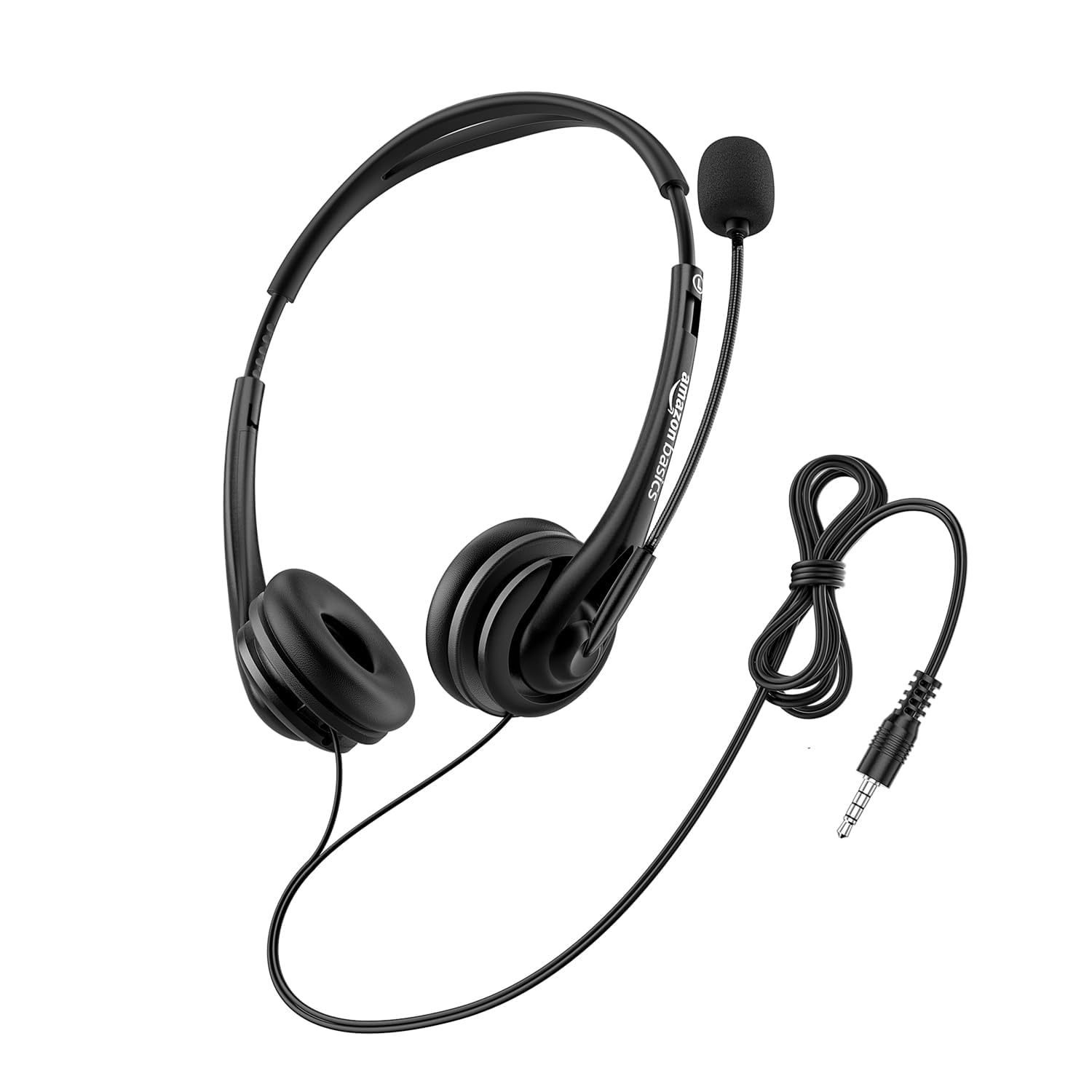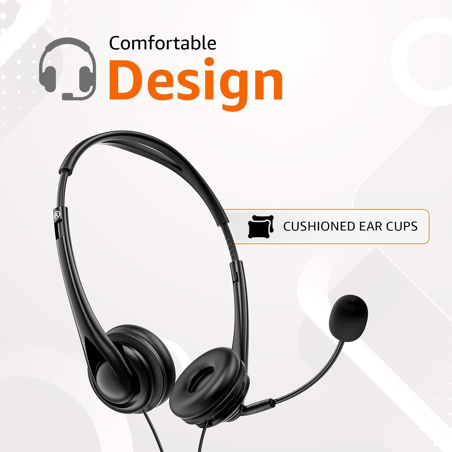 amazon basics On Ear Wired Headphones with Boom Mic | Supreme Sound | Lightweight | Cushioned Ear Cups | Built-in Mic | Perfect for Computers, Smartphones, Tablets & Daily Use (Black)