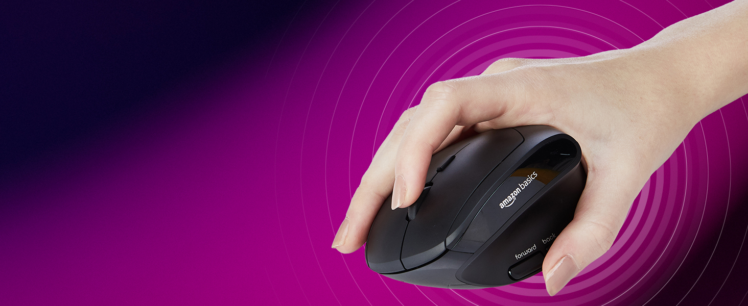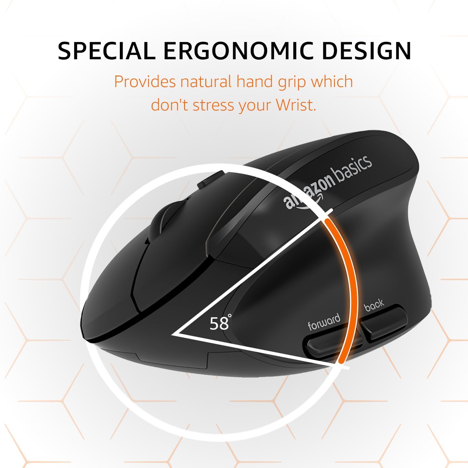 amazon basics Pro Series 2.4G Wireless Ergonomic Mouse for PC, Mac, Laptop | 4 Adjustable DPI Settings Up to 2400 | Shortcut Buttons (Black)