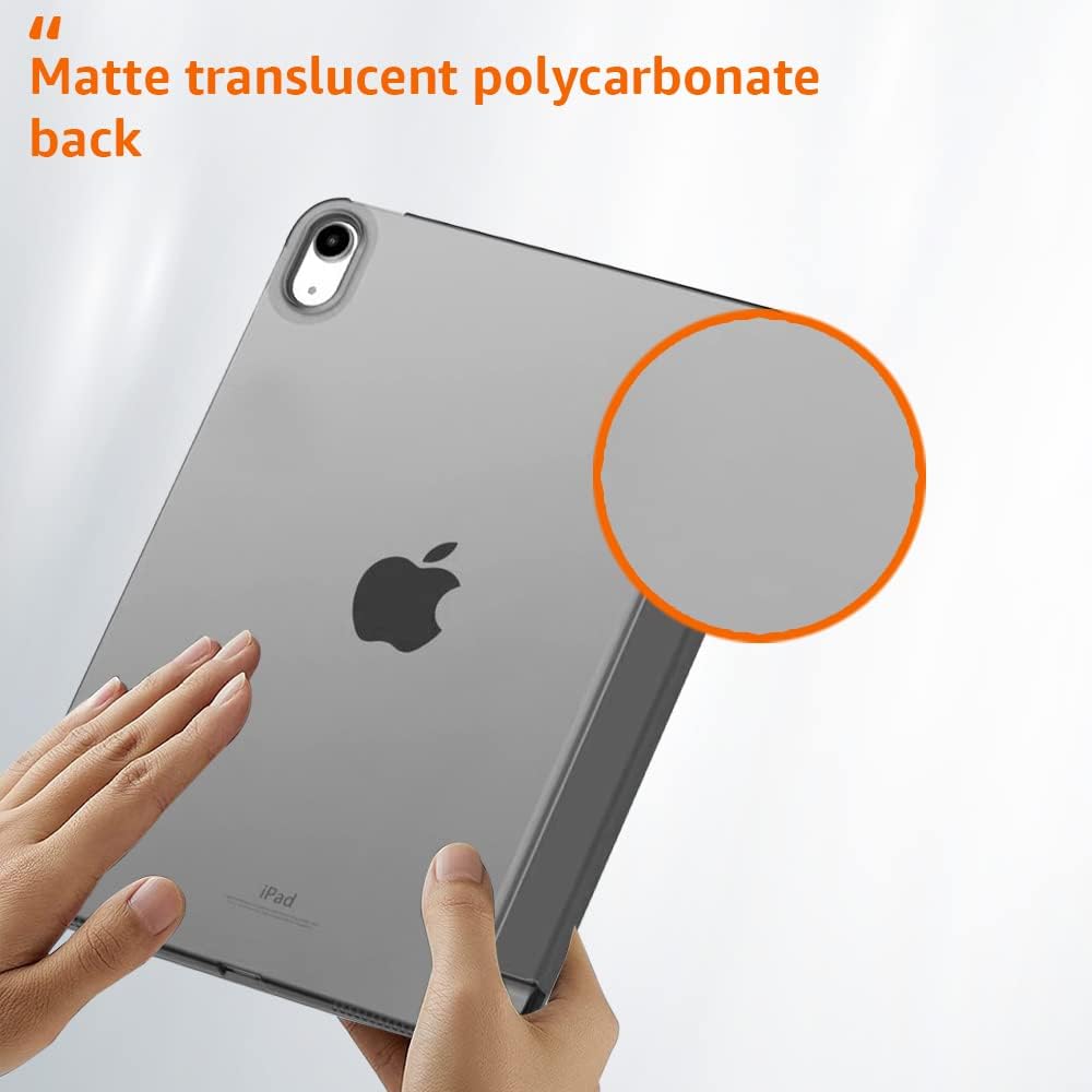 Introducing Amazon Basics Smart Trifold Hard Matte Back Flip Stand Case Cover for iPad Air 11 Inch M2 2024 iPad Air 10.9 inch. Specifically crafted for iPad Air 11 Inch M2 2024 iPad Air 10.9 inch 5th Generation (2022) and iPad Air 4th Gen (2020). Its lightweight hard-back design ensures minimal bulk while providing reliable protection. Enjoy a translucent frosted back cover, full access to all features, and support for 2nd Gen Apple Pencil charging. Complete with auto sleep/wake functionality for added convenience.