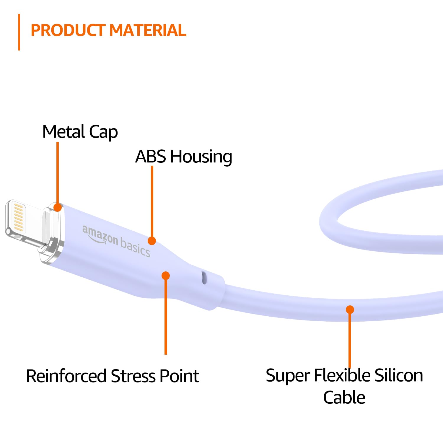 amazon basics Type-C to Lightning Silicone Cable | 20W Fast Charging, 480Mbps Data Transfer Speed | Compatible With iPhone, iPad Air, Pro, Mini, iPad | 1 mtr (Purple)